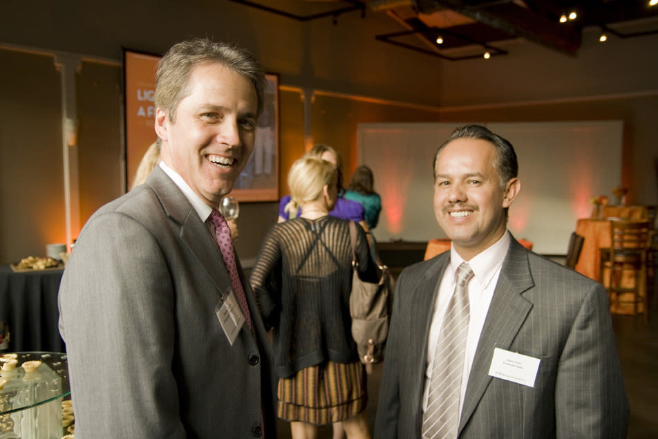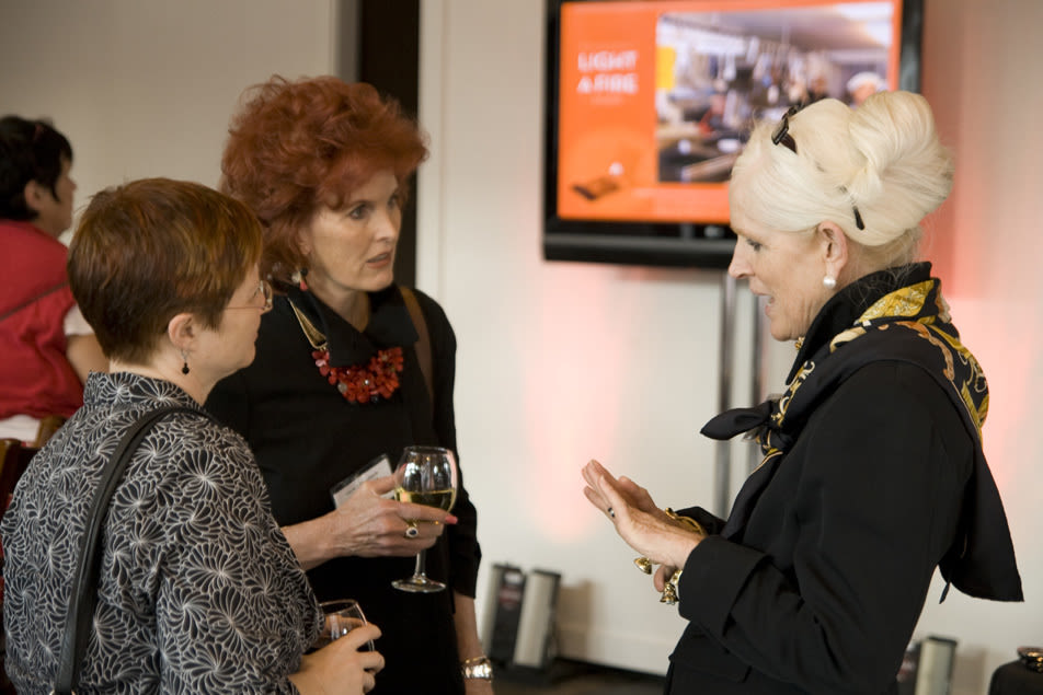 Cree Zischke, Community Relations for JPMorgan Chase, talks with Dr. Gail Hayes-Davis and Brenda MacRoberts of Young Audiences of Oregon/SW Washington.