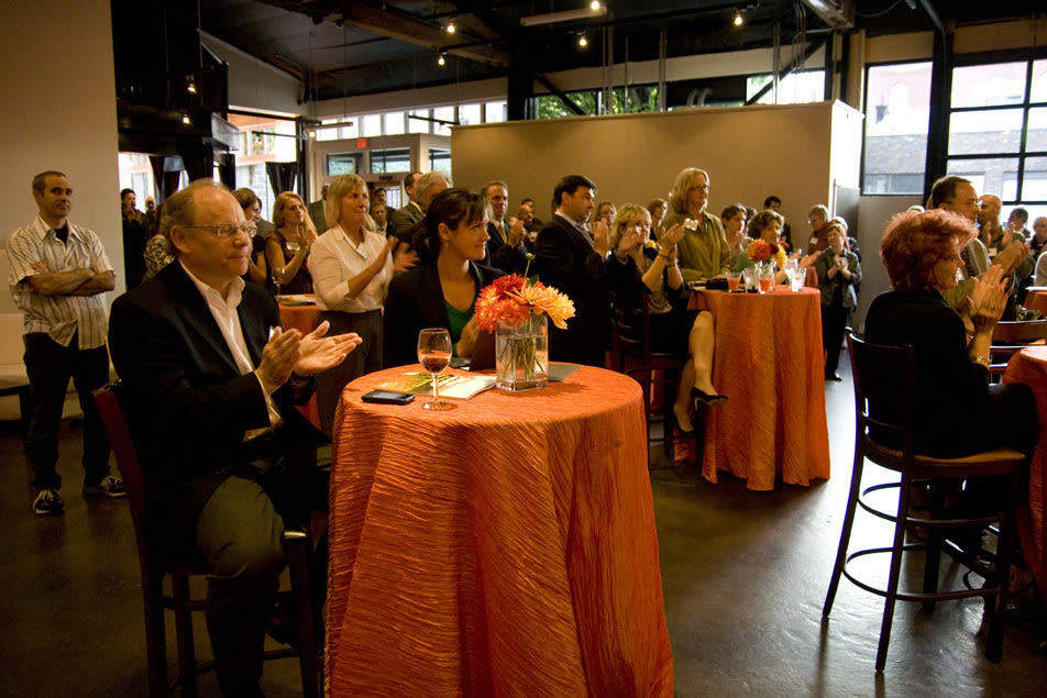 Nicole Vogel, President of Portland Monthly, shares a laugh with Judith Arnell of Judith Arnell Jewelers, Missy Gerber, and Leanne Murray of Organizers Northwest.