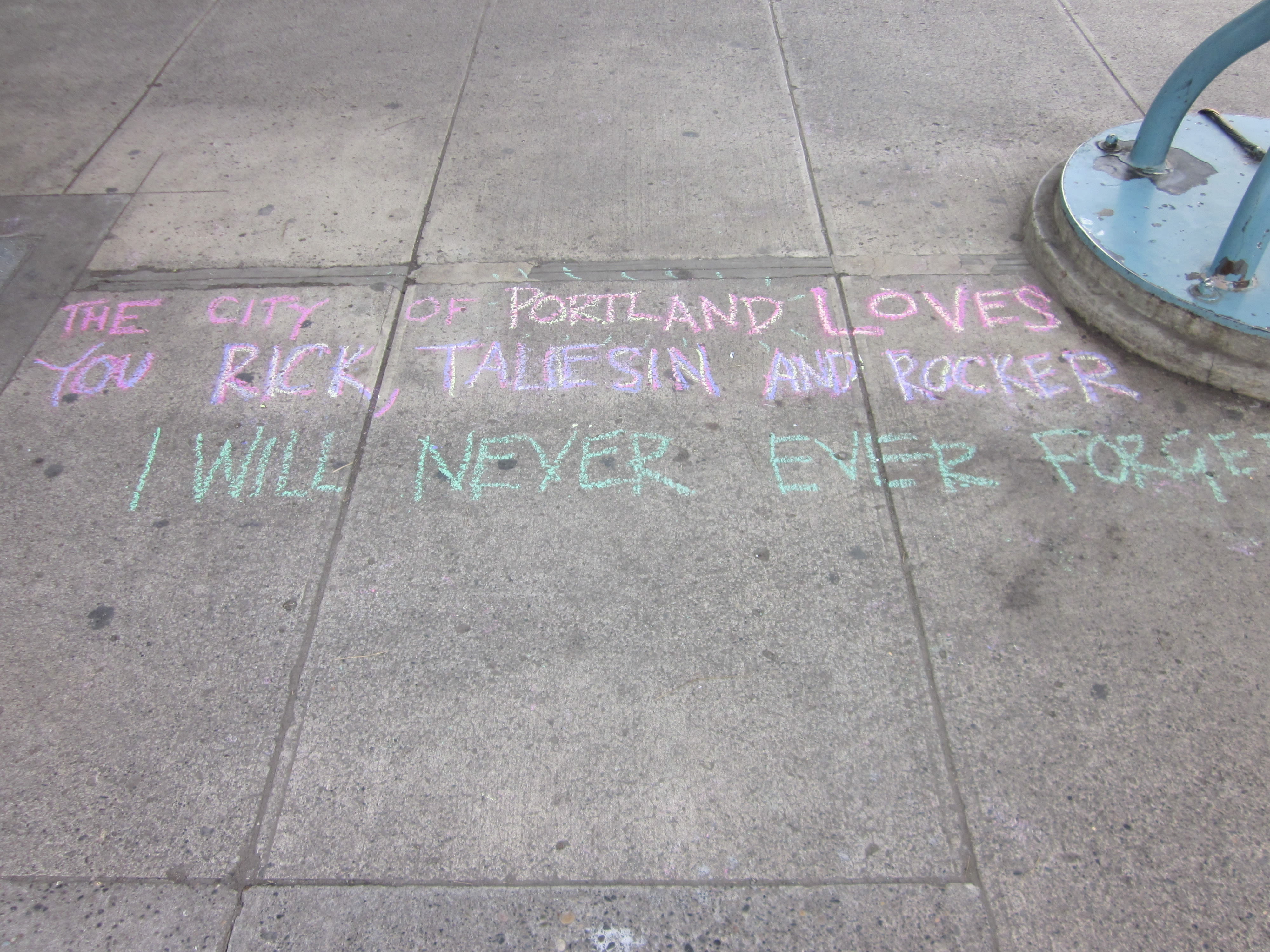 Portland Monthly is remembering the days following the heinous act, when Portlanders decorated Hollywood MAX Station with photos and chalk art. The station has since been repainted as a colorful tribute to the tragedy.