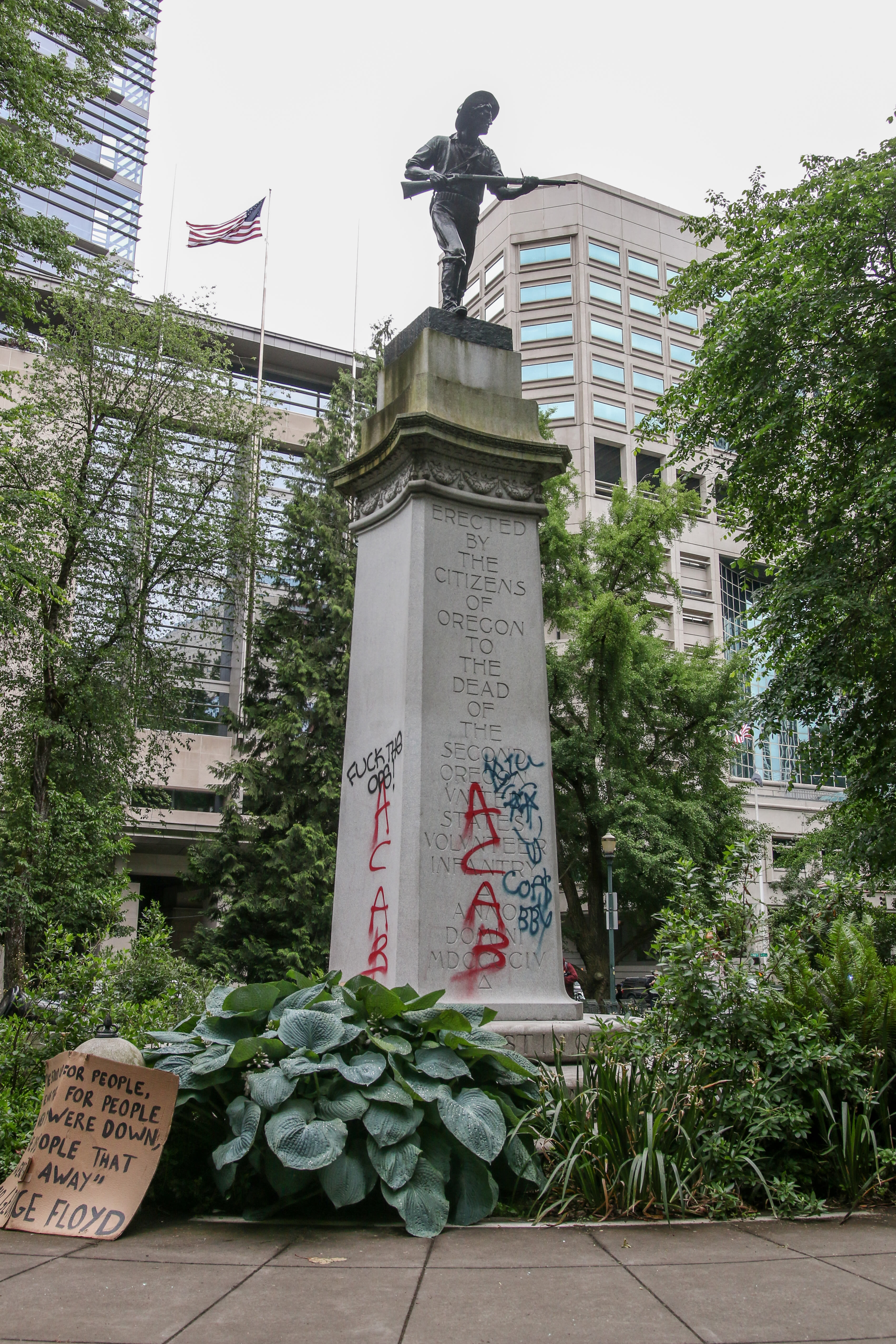Saturday morning, May 30, just hours after a demonstration protesting the killing of George Floyd occurred in downtown Portland. The scene depicts a city, a nation, in grieving.