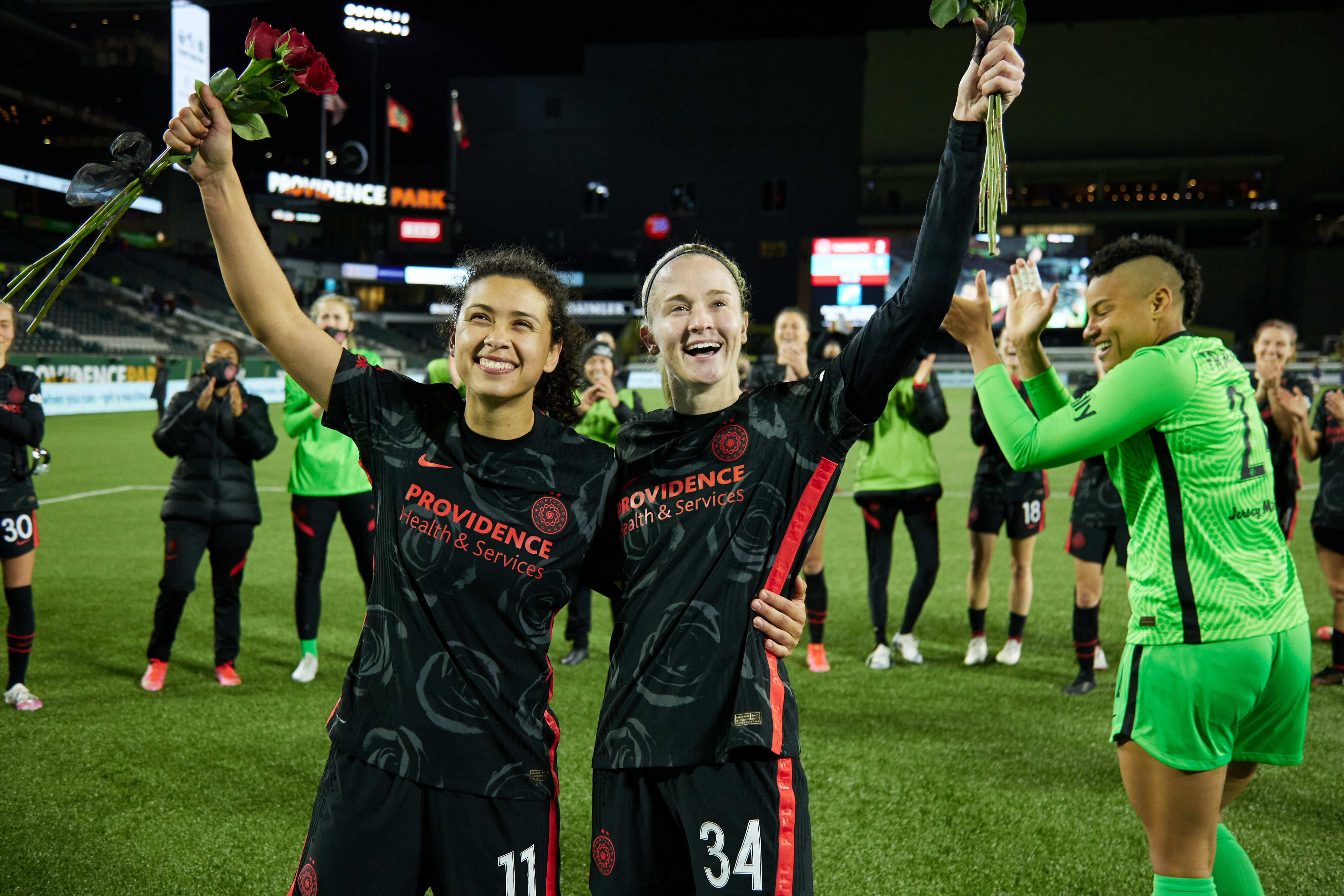 The Thorns salute fans in the North End after their victory over Kansas City April 9. The traditional supporters section will be a lot more packed the next time they host KC, on June 20, after Providence Park starts allowing 80 percent capacity.