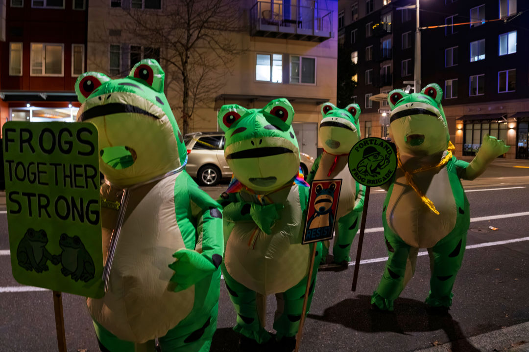 12/24/25 Day Willamette Week named the Portland Frog—a.k.a. Seth Todd, the activist who wore an inflatable amphibian suit outside South Waterfront’s Immigration and Customs Enforcement facility until an officer sprayed chemicals into its air vent—Portlander of the Year. Todd’s response to the title: “It’s nice, I guess.”
