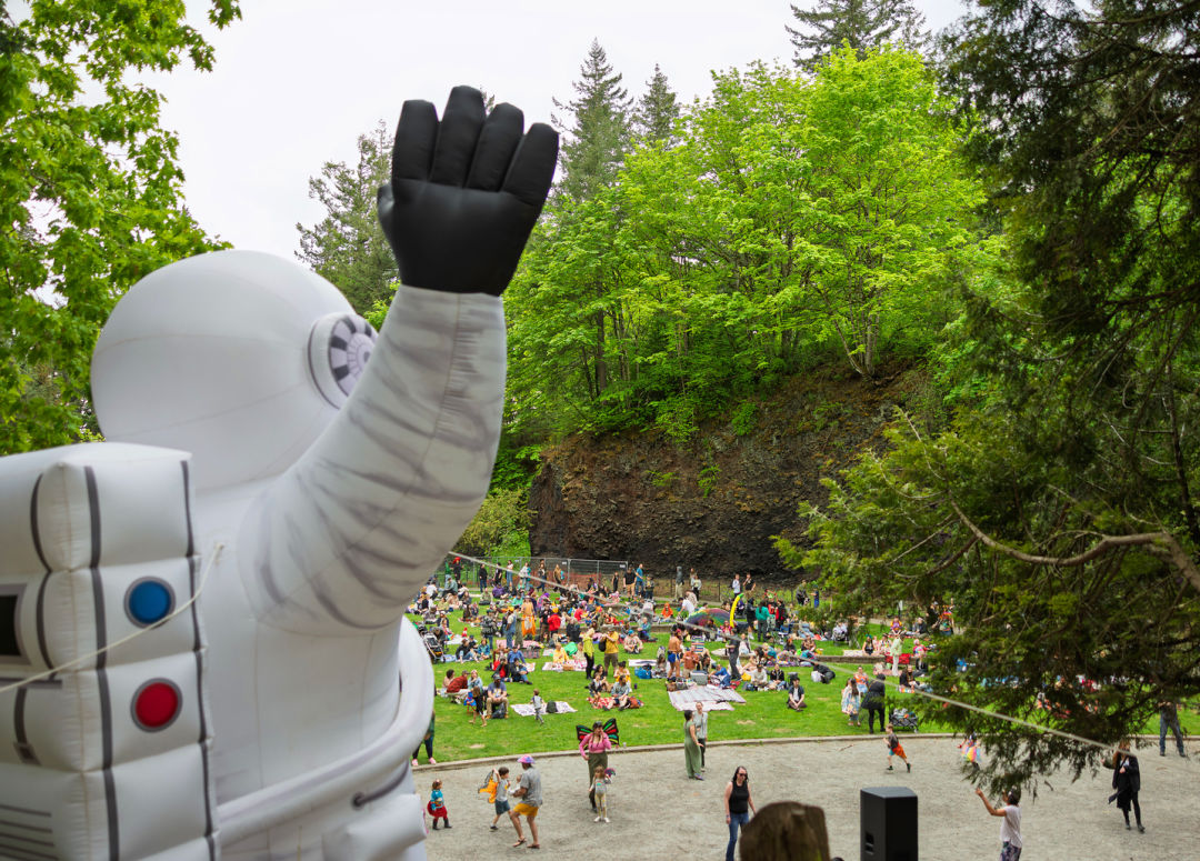 But Tabor Dance’s come-one-come-all ethos also means that a whole lot of strangers get to tumble around together. It’s a sort of mutual surrender to celebration, which is what struck me most when I finally made it out last summer. In June at Peninsula Park, I kicked off my sandals and joined a sea of dancers, damp grass underfoot, giving ourselves over. By the end of the evening, a joyful mass of us packed the bandstand.