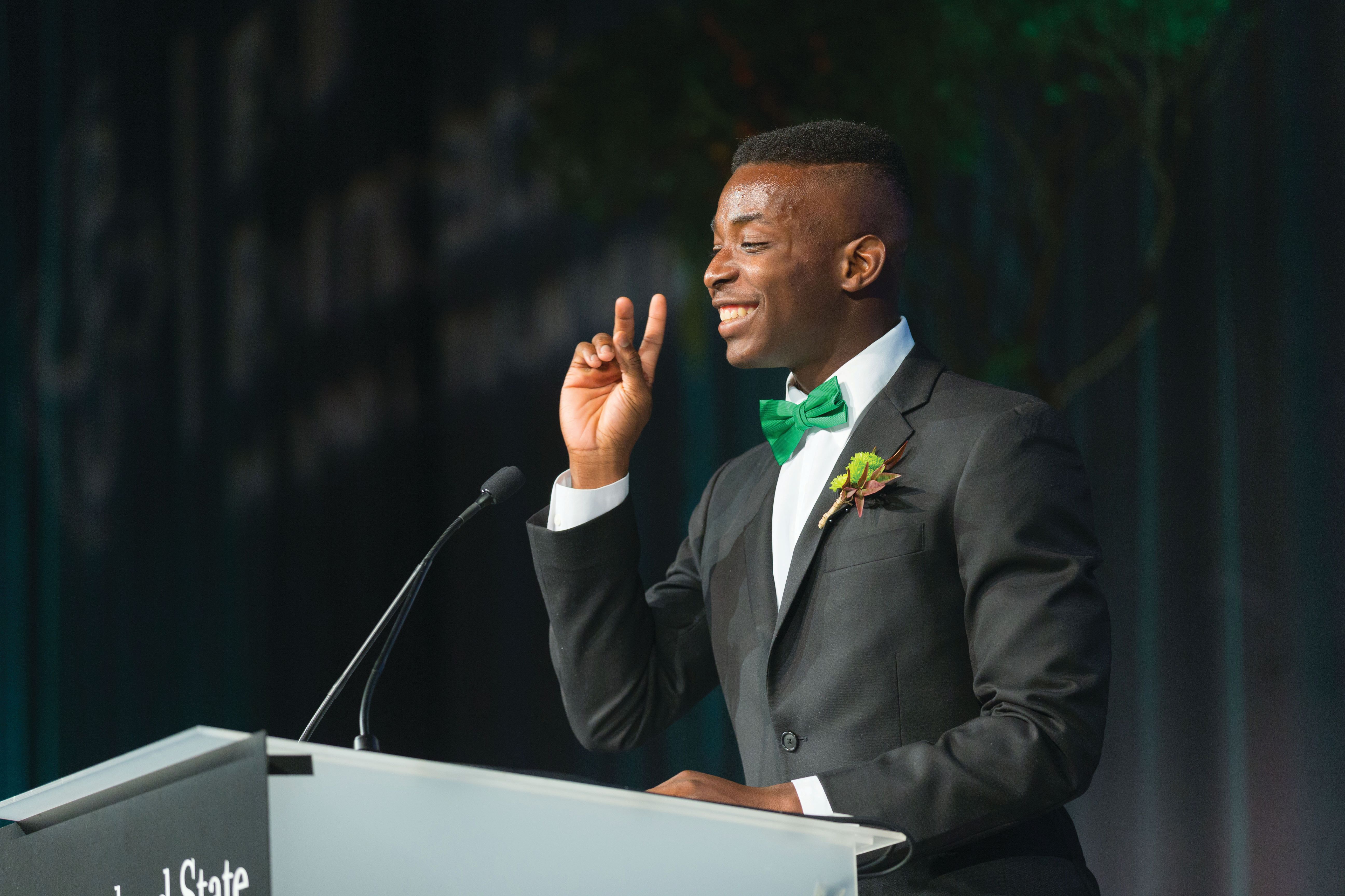 The PSU Foundation raised over $1 million at the 17th Annual Simon Benson Awards Dinner honoring contemporary pioneers. Since 1999, the gala has raised over $10 million. The Philanthropy Award was presented to Drs. Keren Brown Wilson PhD ’83 and Michael DeShane MA ’71, PhD ’77, and Tom Fink ’71 received the Alumni Achievement Award.