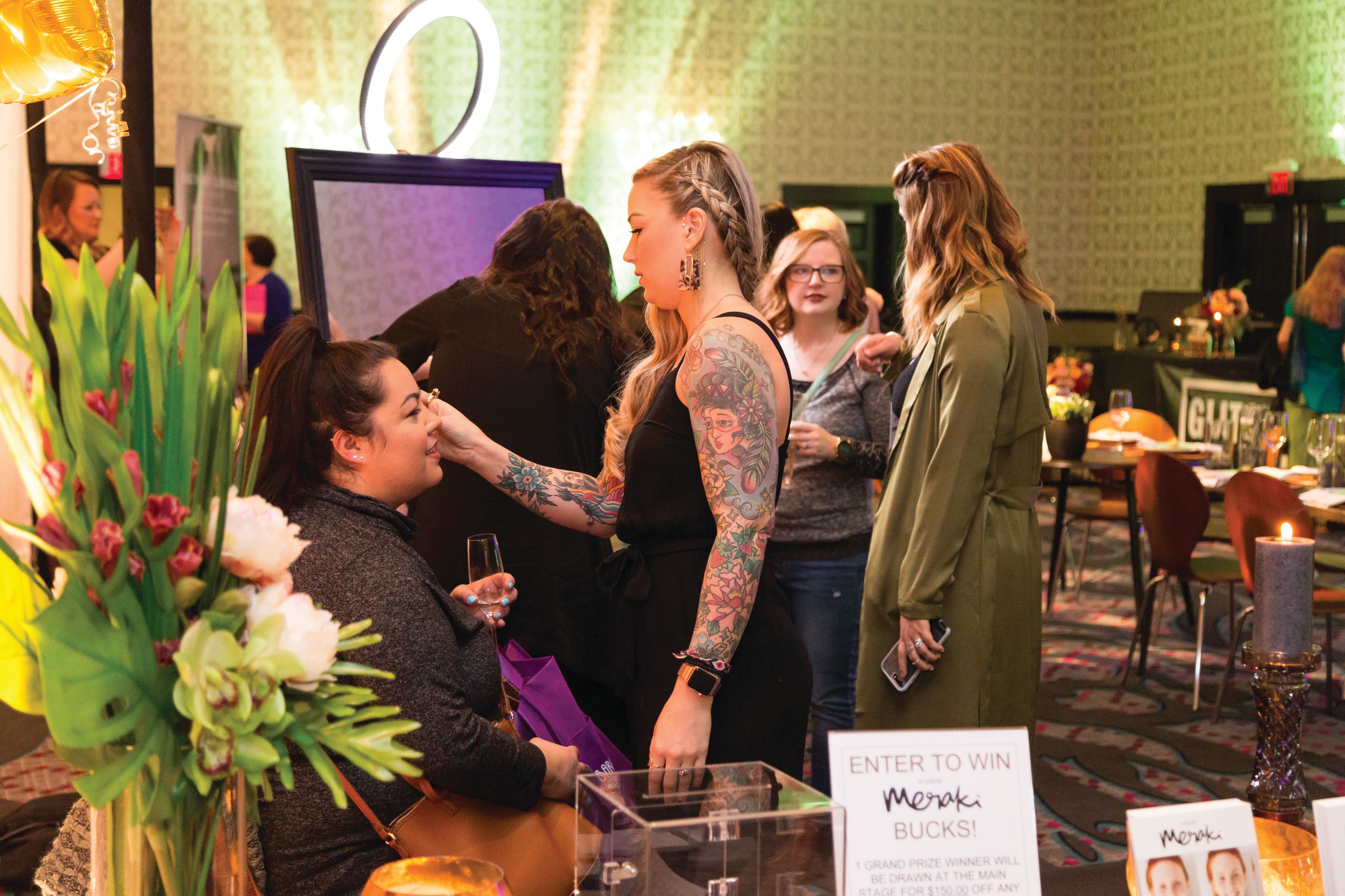 The pages of Portland Bride & Groom came to life on February 18 at the Nines Luxury Hotel in downtown Portland for Rocked, the magazine’s seventh annual couture bridal event. Brides, grooms, and bridal squads sipped champagne and mingled with over 50 of the region’s most elite wedding service providers. One lucky guest won a honeymoon vacation to the Columbia Gorge Hotel, and were happy to have raised funds for our event beneficiary, Brides for a Cause.