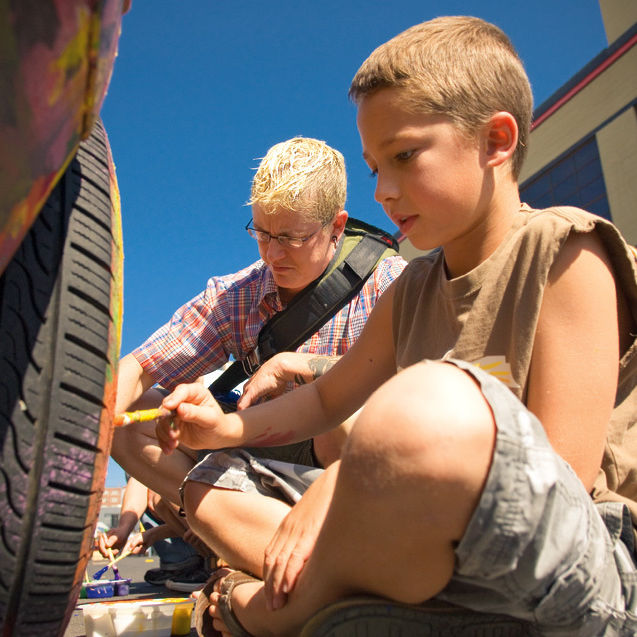 At the Iron Artist competition, attendees built sculptures to benefit the School & Community Reuse Action Project.