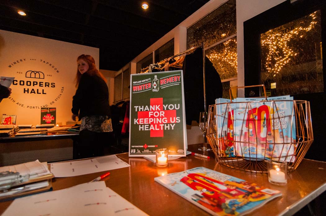 On Tuesday, January 18, we invited our 2016 Top Doctors + Nurses to take a break from the exam room and join us for an evening dedicated to celebrating another year of great medicine. Held at Cooper’s Hall, a venue coincidentally reminiscent of M*A*S*H set, we brought in Laphroaig, Basil Hayden’s, Bookers, and a plethora of other spirits with amazing bites provided by the Art of Catering. Wine on tap, Widmer Brewing on ice, and a soundtrack of smooth tunes: it was just what the doctor ordered.