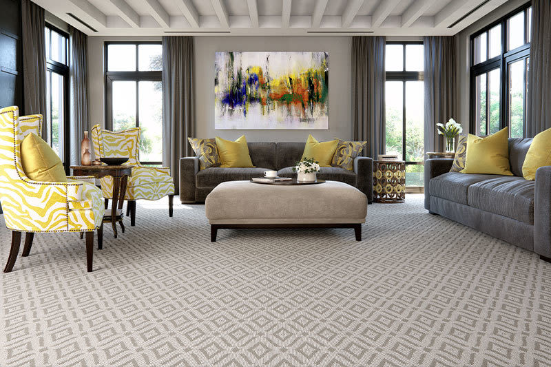 Wall-to-wall carpeting in a neutral color is perfect year-round, just change out your accessories with the seasons.