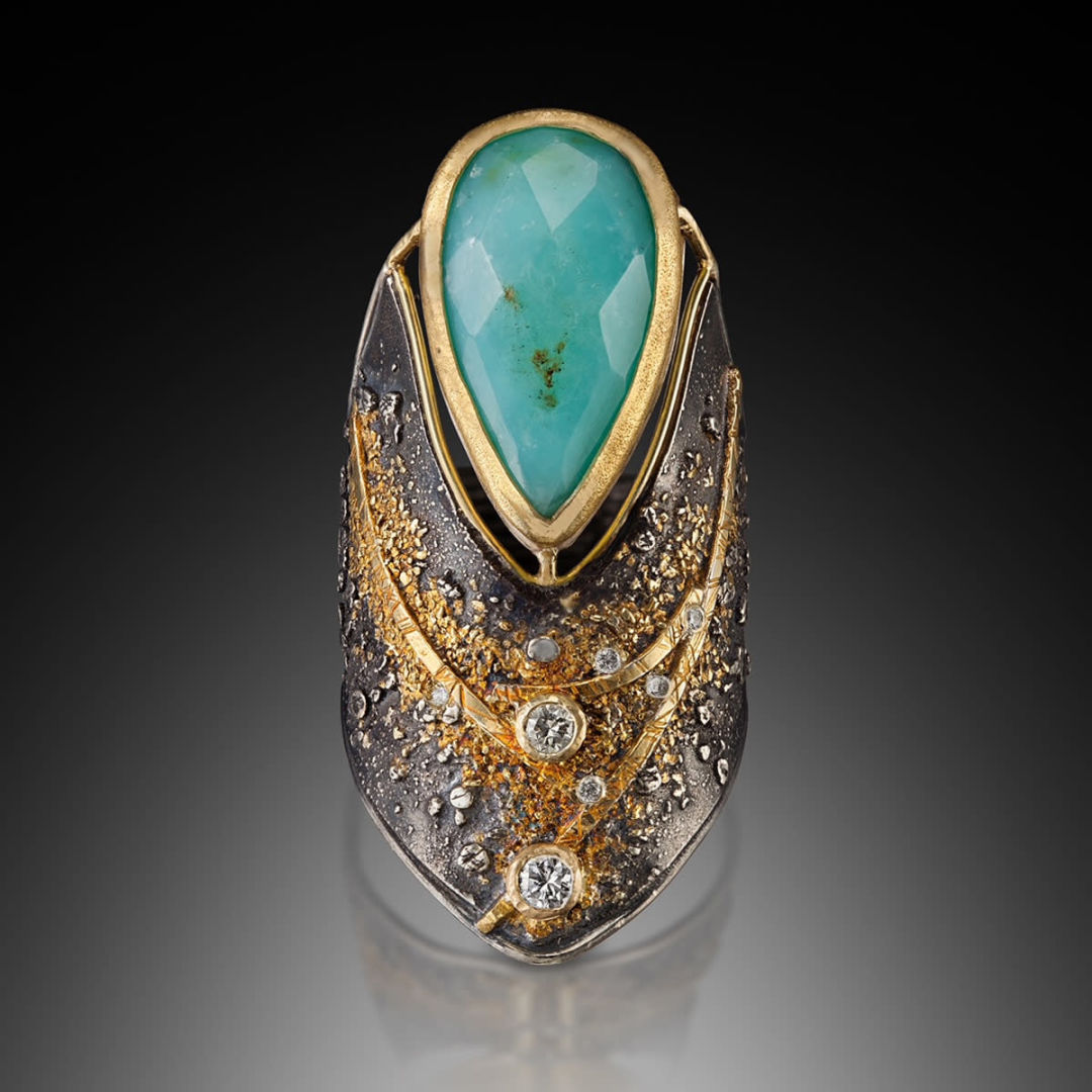 The alchemy of metalworking brings together makers of fine jewelry, metalsmiths, and metal sculptors via the Creative Metal Arts Guild (CMAG). What all of these artists share in common is the love of transforming metal through shaping, heating, bending, and hammering metal to forge and fabricate their work. Where they differ is the types of metal and/or stone they use, as well as their design style, forging process, and the types of masterpieces they create. Even though the materials and heat used may be the same, each metal artist brings their own personal inspiration and creative expression to the transformation process.