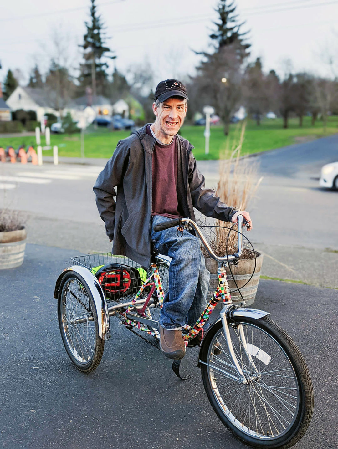 Once Wilkerson discovered Adaptive BIKETOWN, operated by Kerr Bikes, a social enterprise business benefiting nonprofit Albertina Kerr, a new world opened for him. Founded in 2009, Kerr Bikes provides public seasonal bike rental services, bike service, adaptive bike rentals through Adaptive BIKETOWN, surreys, e-bikes, tandems, road and mountain bikes, and more. All proceeds go towards supporting Albertina Kerr, a local nonprofit that provides programs and services for people with intellectual and developmental disabilities (I/DD) and mental health challenges. In 2023, Kerr Bikes provided nearly 4,000 rentals.