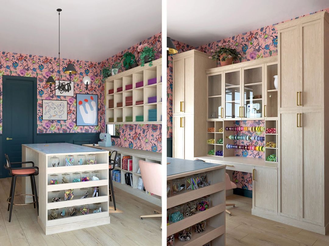Depending on available space, you may simply dedicate a wall unit in a laundry room or office to becoming your crafting HQ. Some folks, however — like recent retirees or brand-new empty nesters — may devote an entire room to their projects and passions. Empty nesters, for example, may be navigating many emotions as their chicks fly the coop and set off on new, thrilling paths of independence and exploration away from home.