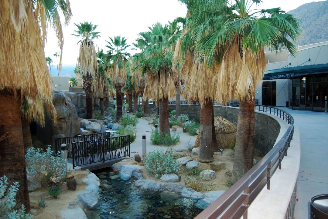 The Agua Caliente Cultural Plaza outdoor spaces include the Gathering Plaza adjacent to the Agua Caliente Hot Mineral Spring, originally known as Séc-he (the Cahuilla term for “the sound of boiling water”). The Oasis Trail provides an interactive, cultural learning environment. This trail mimics, on a smaller scale, the distinctive character, geology, flora, and beauty of the nearby Tahquitz Canyon and Indian Canyons, ancestral homes of the Agua Caliente people.