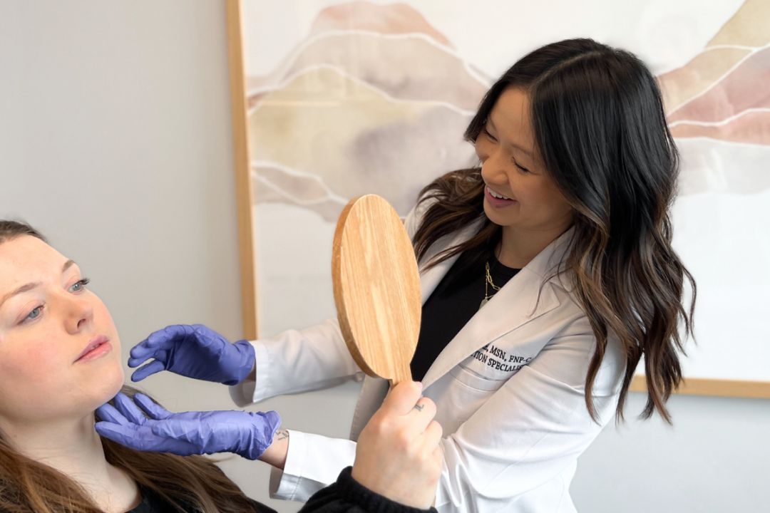Our team is here to help you explore what works best for you, whether that’s through injectable treatments or professional recommendations for at-home care. We’re committed to empowering you on your aesthetic journey — whatever that looks like for you.