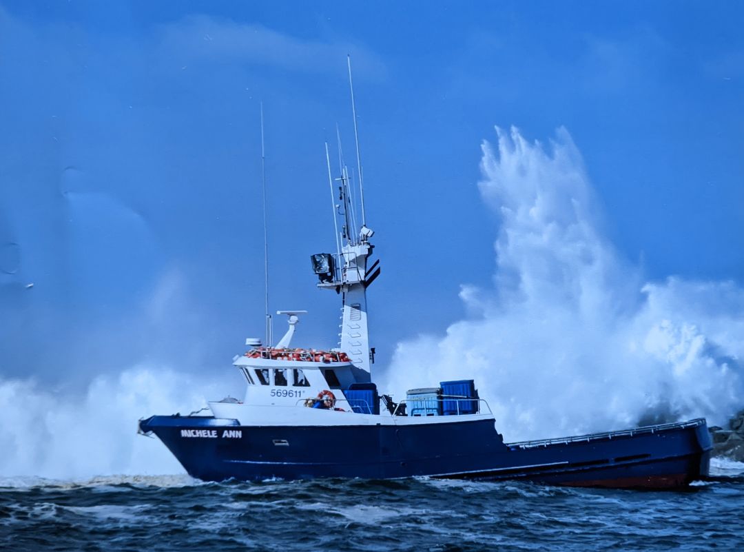 The name of Bob’s next boat? F/V Michele Ann. Michele had joked about naming the boat after her, not thinking Bob would take it to heart. “She broke down crying in surprise when she saw it,” he said, “I gave her the bottle to christen it, and when she did, she said, ‘may the life of this boat be bountiful and safe.’”
