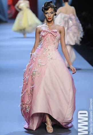 Be still my beating heart. Women’s Wear Daily has just published these images from the Christian Dior spring couture line. I would do nearly anything to get a chance to wear one of these sculptural masterpieces. I’d box Tonya Harding, lick a frozen flag pole or even chug a can of Pabst Blue Ribbon (shudder). I am flat out cuckoo for this couture.