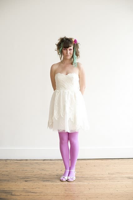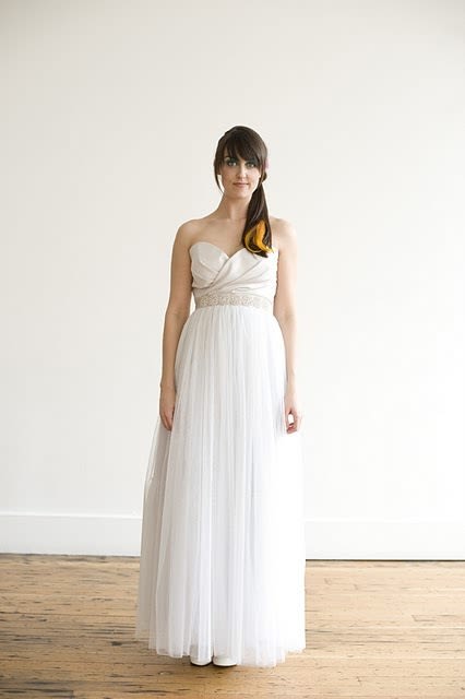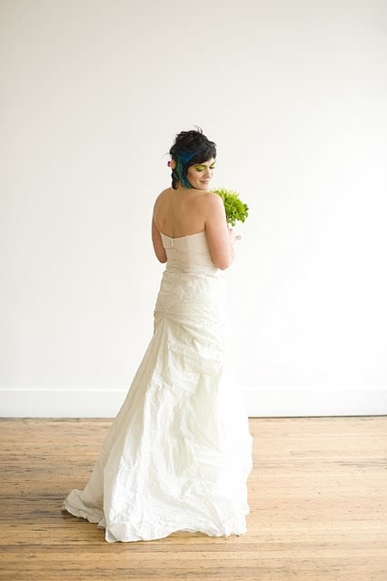 In honor of the fluffy white stuff frozen on my car and the fluffy white belly parked next to my computer (the cat’s, not mine, thank you very much), I give to you photos of other fluffy white things. Elizabeth Dye’s “A Novel Romance” fashion show gave a neon kick to the start of wedding season and I have pictures now to prove it.