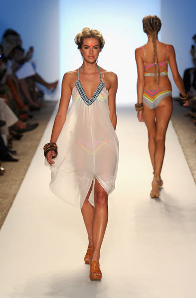 Mercedes Benz Fashion Week is not bound to New York. The monolith of runway revelations has a special little jaunt down to Miami each summer to show off all the trends in sunny swimwear. Watching that many perfect looking ten foot tall, tan models is enough to give anyone a complex, so allow Shop Talk to save you the therapy bills and present the top trends in swimwear. From 50’s flare to boho with high-waisted animal prints in between, let the slide...