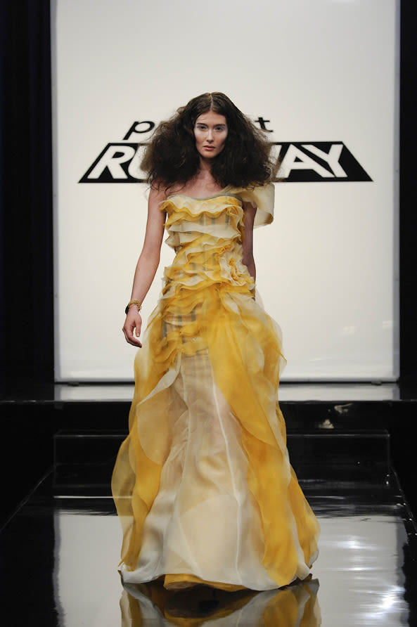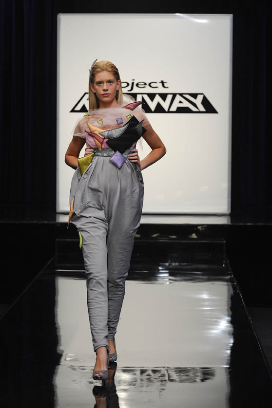 In a rare, but welcome moment in this season of Project Runway, the producers actually (theoretically) had a challenge I respected. The designers teamed up with tweens and teens from the Harlem School of the Arts to do shared paintings that would ultimately inspire an Avant Garde runway look. Some of the young artists were a little more vocal than others. Skyy, 12 cracked me up with the constant peppering of questions for Viktor, including, “What’s your fa...