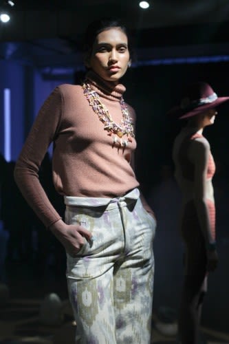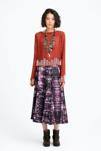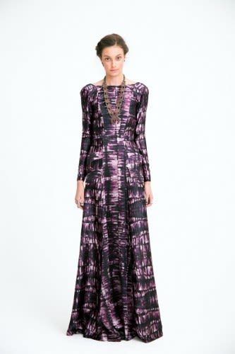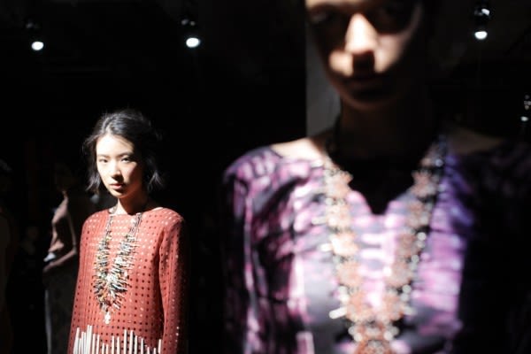 After her Project Runway win Gretchen Jones left Portland for the bustle of New York City, but it’s very clear she took a little detour to the Southwest along the way. Her fall pieces debuted this week in an exhibition style event for NYFW and showed richly imbued earth tone fabrics, patterned prints and jewelry galore. Even the models nails had crackles reminiscent of actual turquoise. Gotta love those details….