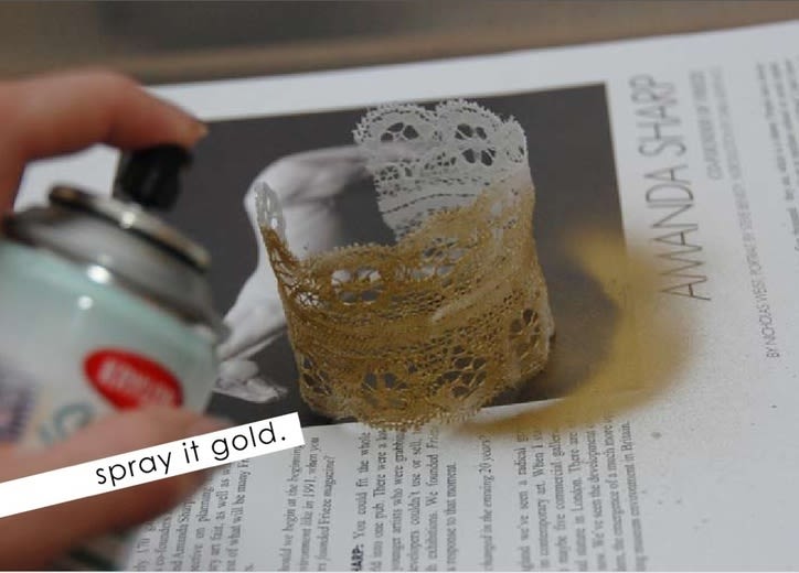 Slideshow Slide Show: Golden Lace Cuff August 22, 2012 Photos: Runway DIY of Filed under Share Share on Facebook Share on Twitter Share on LinkedIn Share on Pinterest Share via Email Share on Reddit Show Comments