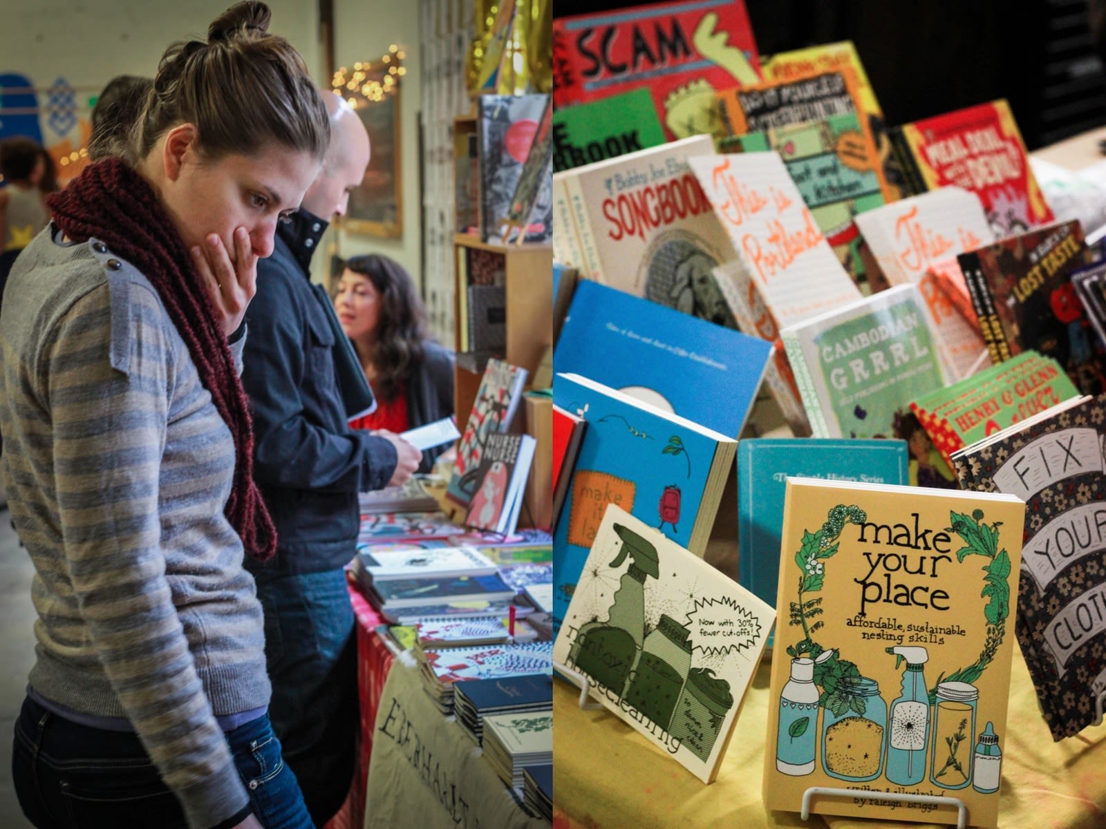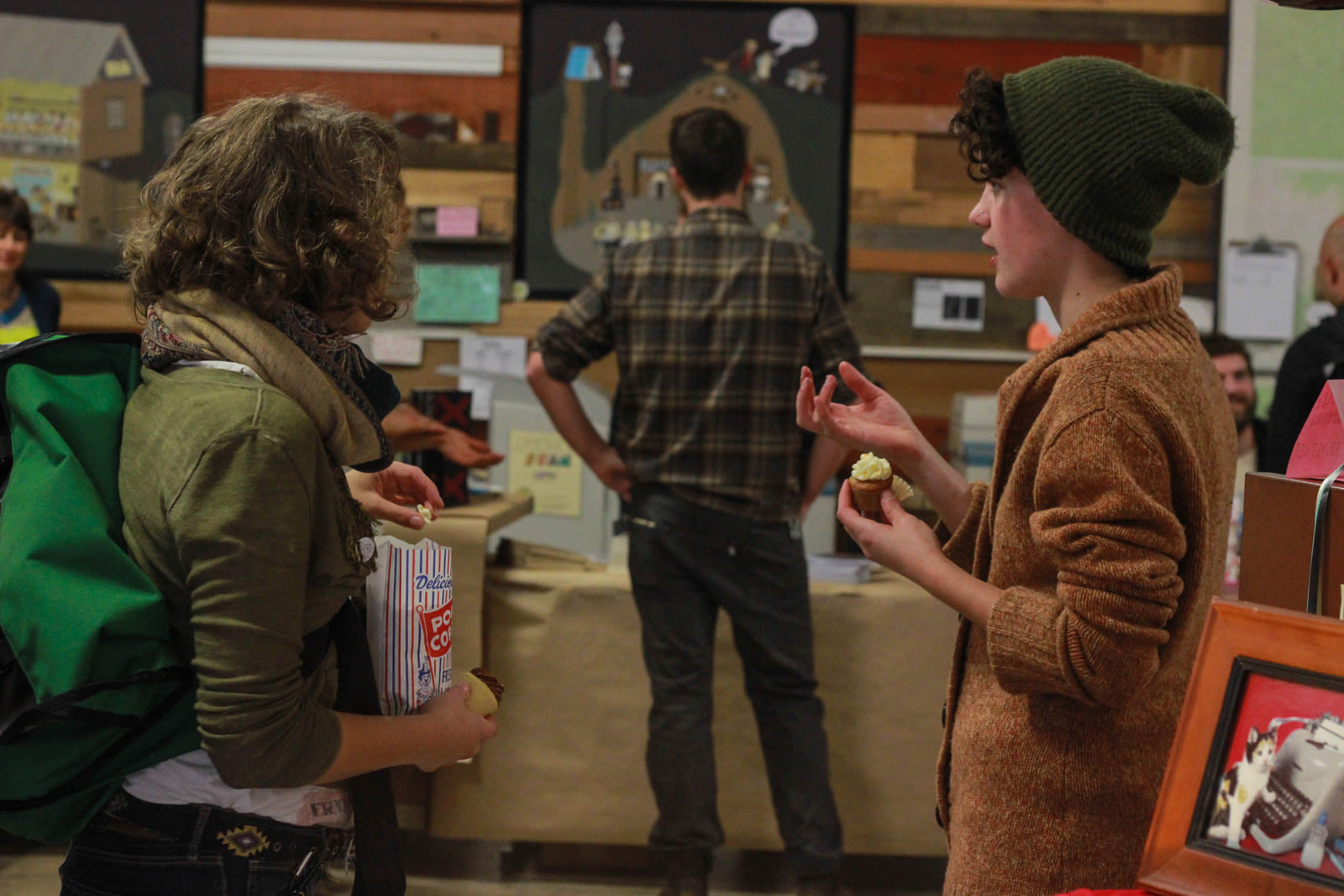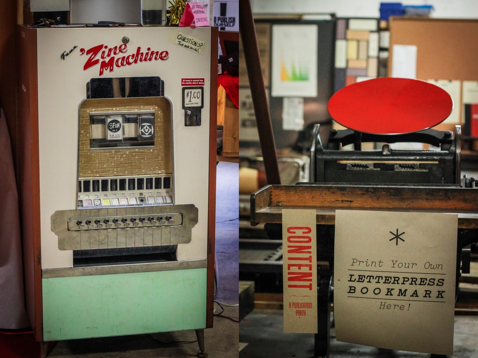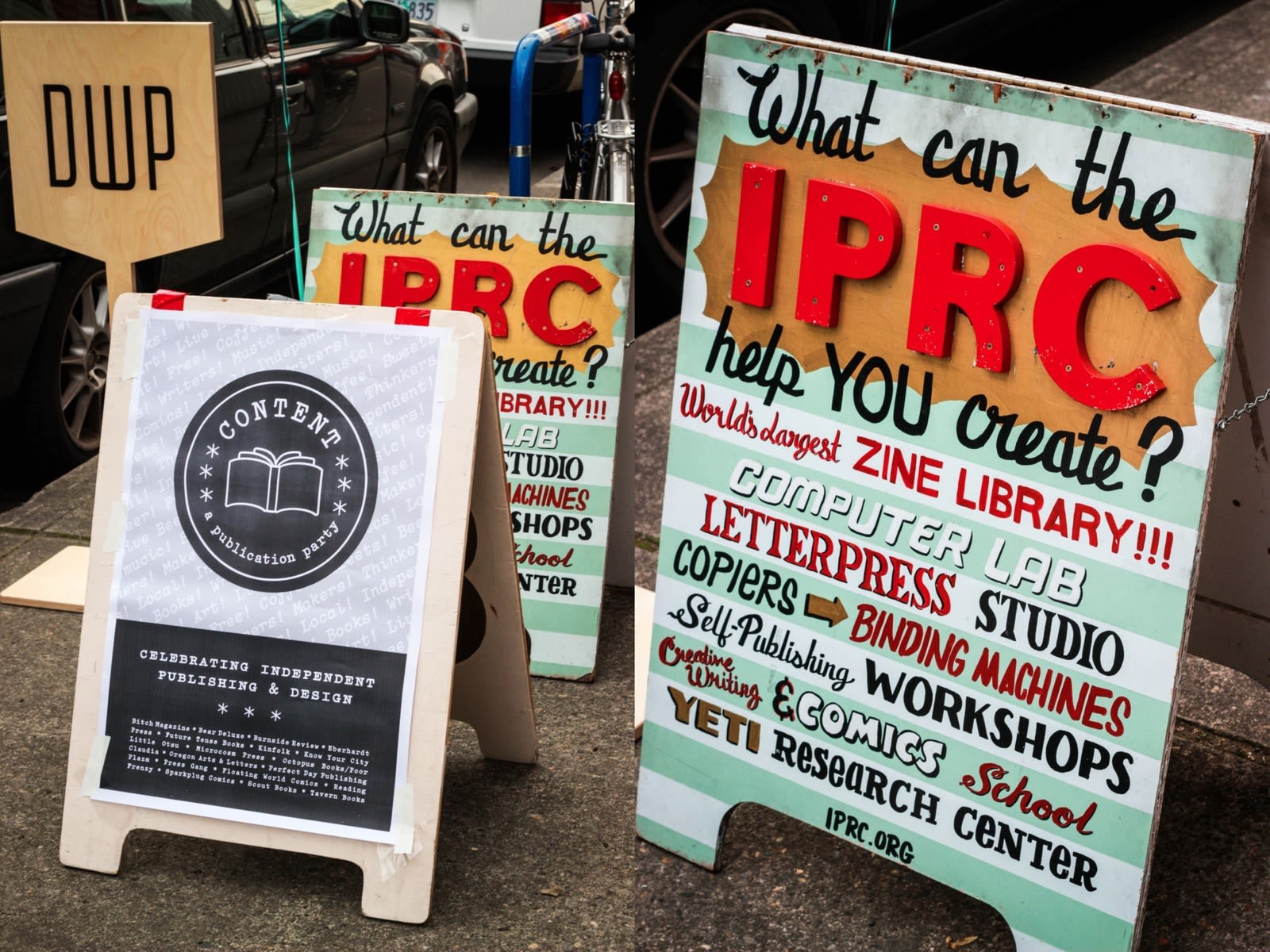 Squeezed into the Independent Publishing Resource Center, CONTENT featured twenty tables overflowing with colorful, clever creations from Portland publishers and designers. This publication party was a true party in every sense of the word, featuring complimentary cupcakes and popcorn, Stumptown cold brew, and a keg of Ninkasi IPA. Musical guests Nick Jaina and Laura Gibson wowed the crowd, and attendees were invited to print their own CONTENT bookmarks on a vintage letterpress.