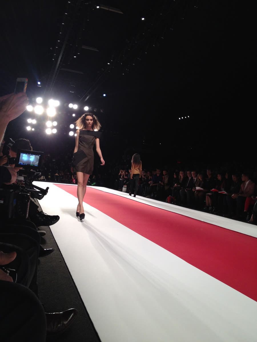 Day 2: Shows starting on time is a rarity, but you never know, so the second I finished that show I head uptown breathing in the frigid air while literally skating down a street in high heels to the next venue.