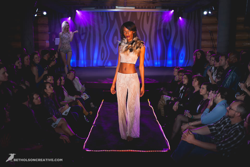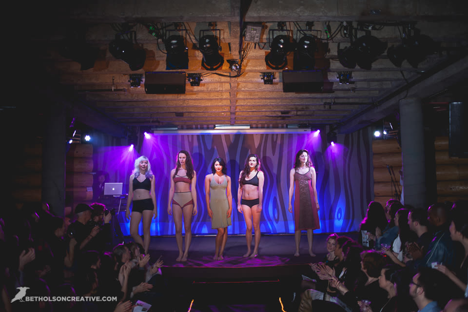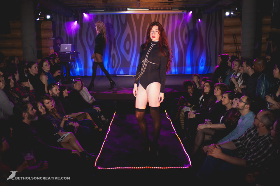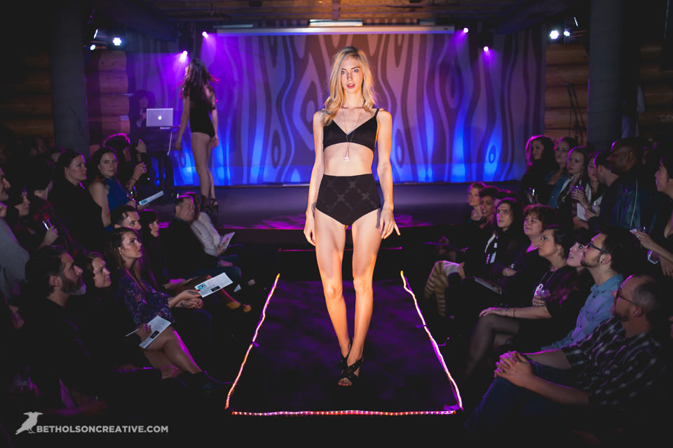 On February 11, the Doug Fir stage—normally reserved for indie bands—became a walkway for indie undergarments instead. The packed-to-the-brim house featured an enthusiastic crowd that ranged from the young stylish set, to the fashion curious, to the dudes behind me who said, “We were walking by and saw lingerie show and bought tickets right away.” Together the mish-mashed crowd cheered on nearly a hundred lingerie looks from eleven local companies. That group included some lust-worthy looks from known names Lille Boutique (velvet high-waisted panties? Yes, please!), and Rachel Rector’s signature chic color-blocked bra and panty sets, as well as some newcomers (with cute points awarded to Mowest Creations for booty flattering bodysuits and aptly placed heart appliques). Adding to the flair, jewelry designer Amy Fox of Iron Oxide showed beautifully intricate body chains hung over black bodysuits, Chubby Cartwheels brought the sex for the plus-sized set, and there was even models in airbrushed faux lingerie. All in all, an excellent reminder that our fashion industry stretches far and wide and ladies can “get local” from the inside out.