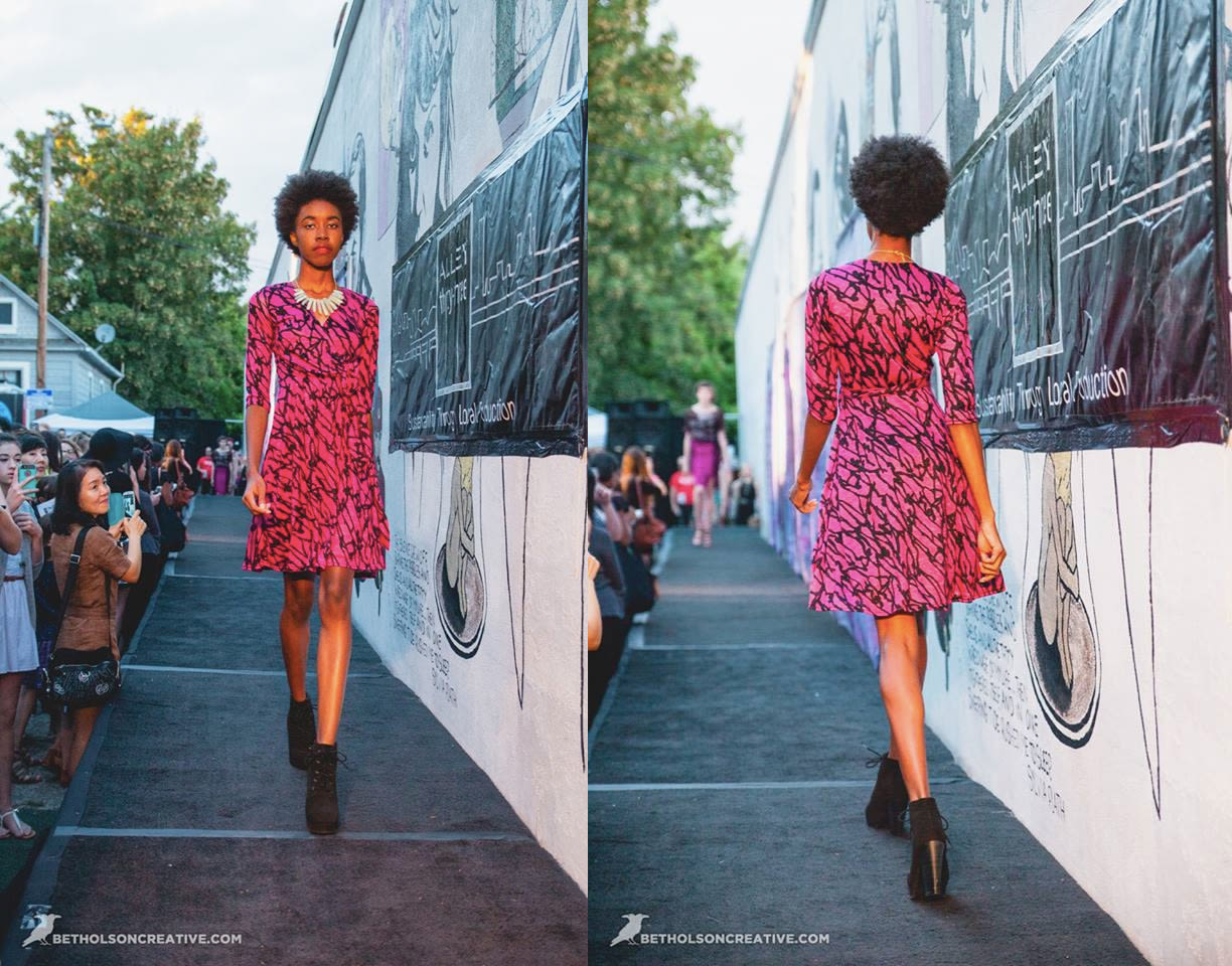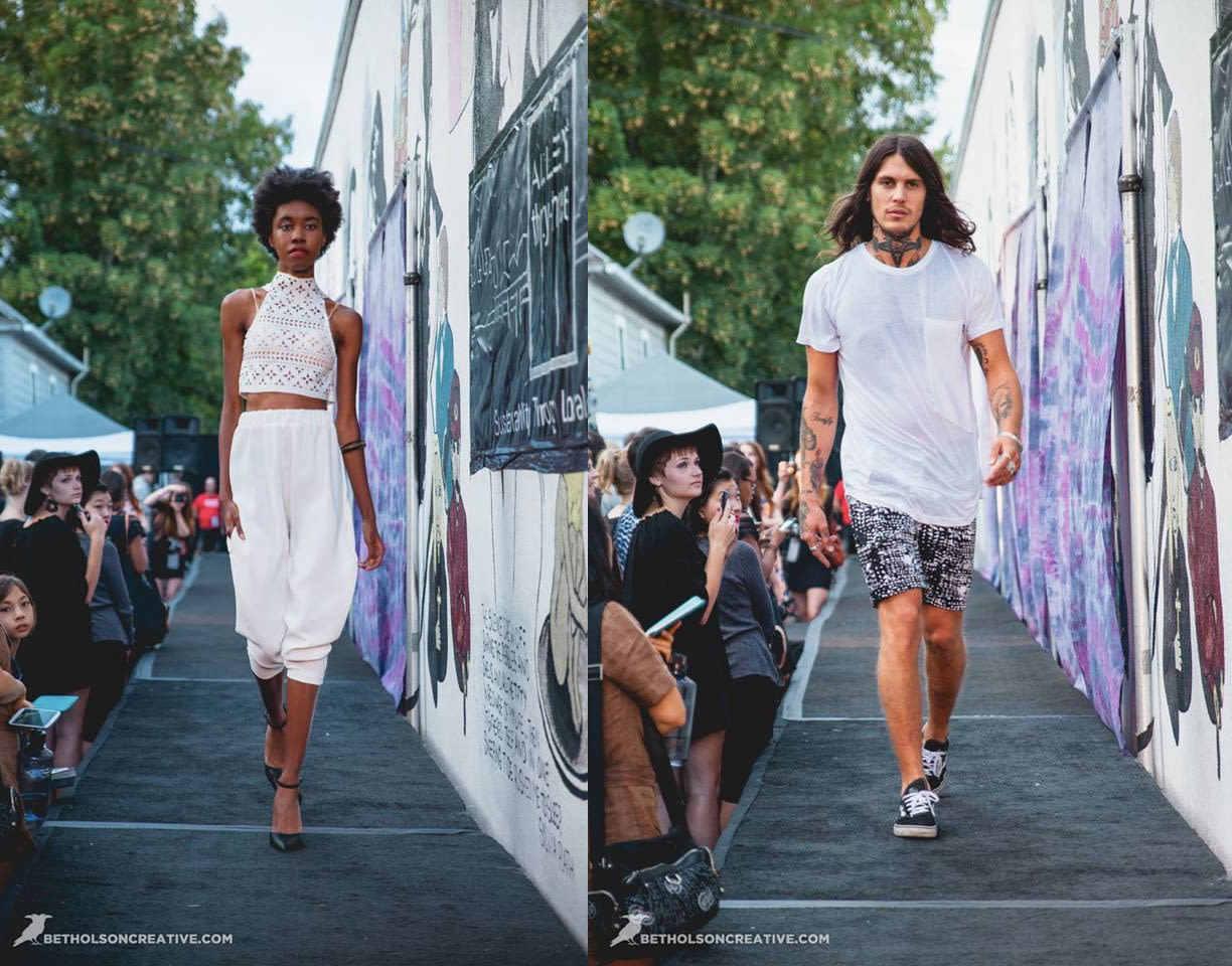 On August 8, the Alley 33 production team of December Carson, Elizabeth Mollo, and Cassie Ridgway managed to cram nearly 400 people into a side street off Hawthorne and let fashion rule the streets. With me on the microphone, DJ Gregarious spinning, and a happy crowd cheering for fashion, we were off.