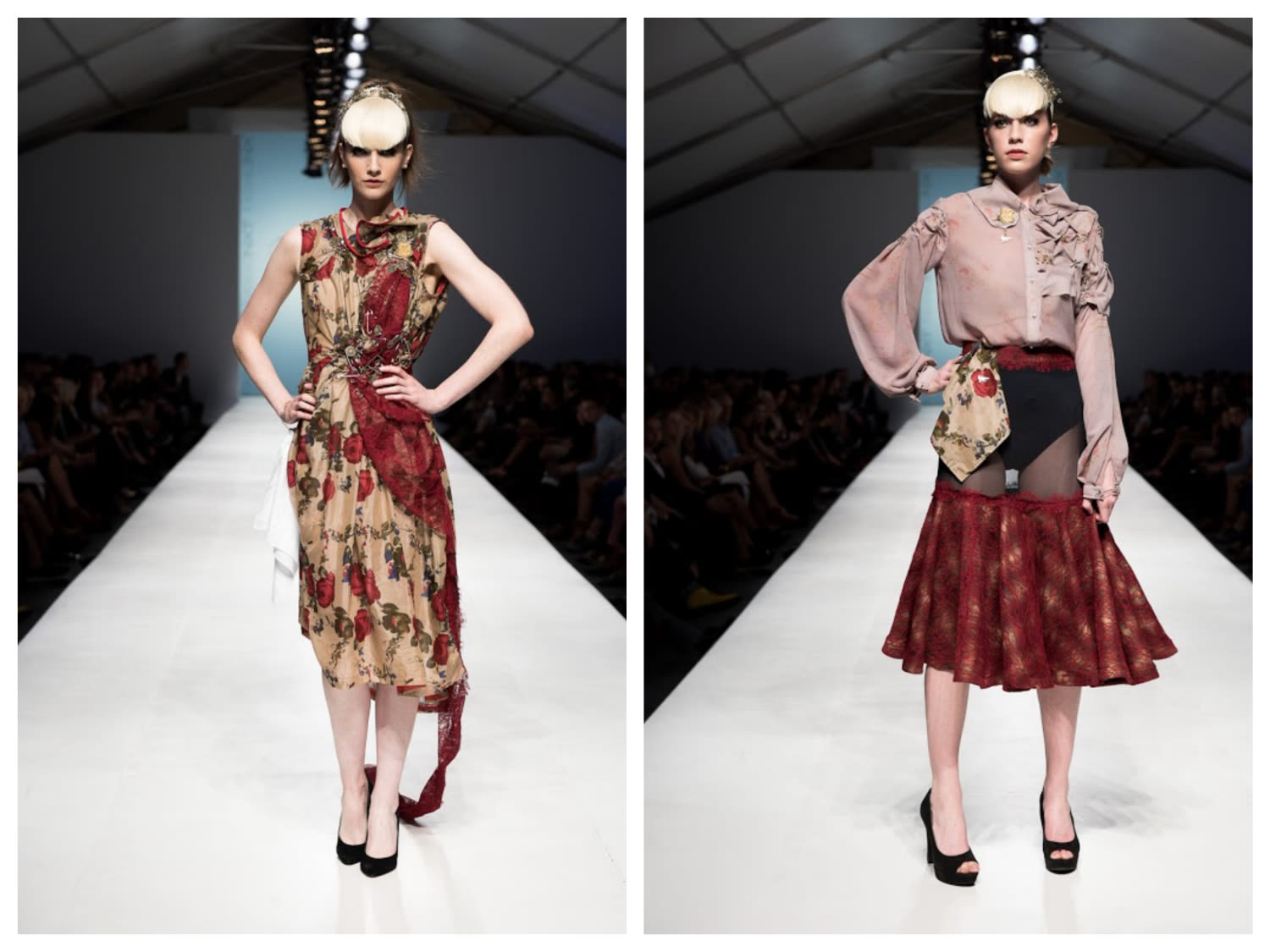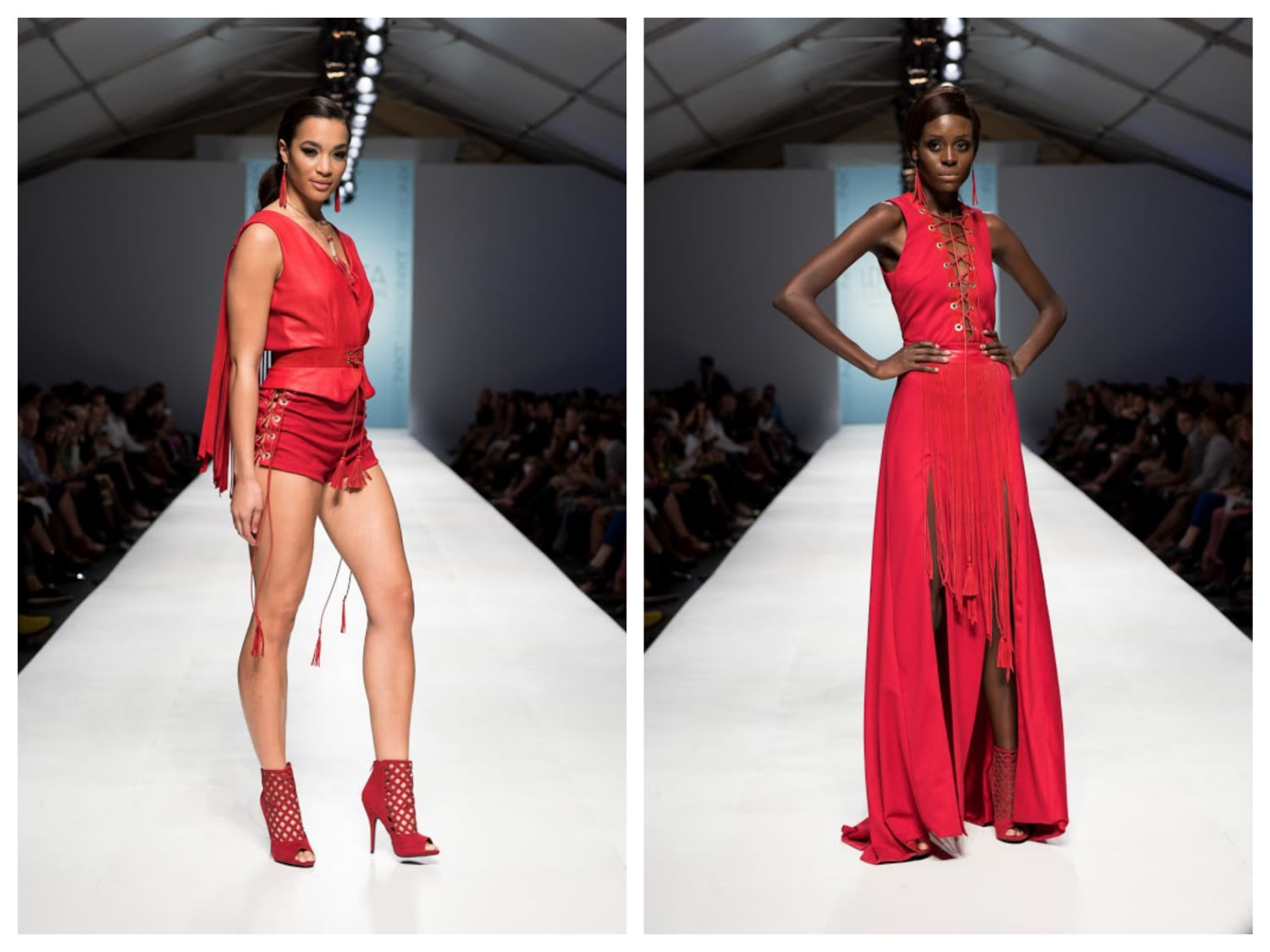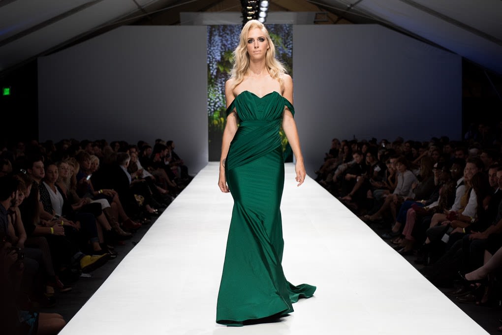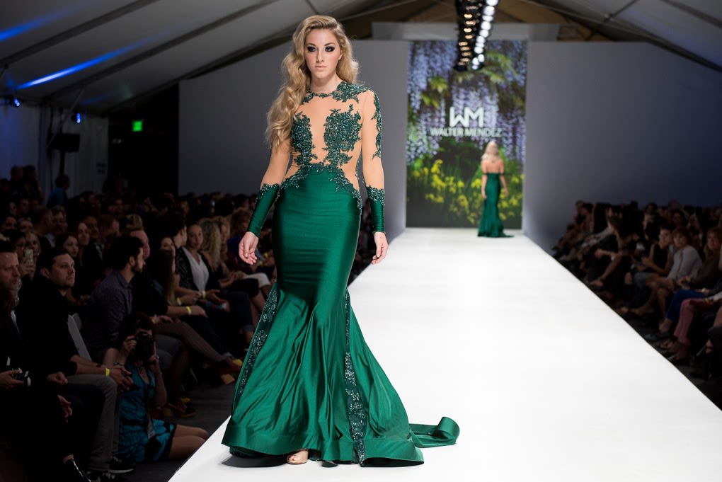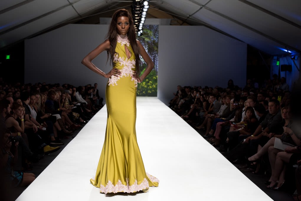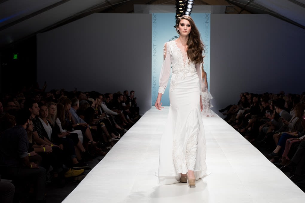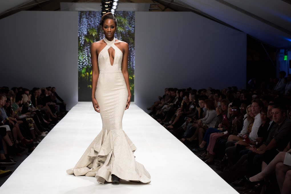 A night that was a mixed bag of local and visiting designers, and frankly designs that were hit or miss. After a first half that ran the gamut from highly embellished wedding gowns to fringed leather rompers the final collection from Michelle Lesniak was by far the most emotive, cohesive collection straying away from the seemingly thousands of gowns we saw over the week to offer a full line of dresses, blouses, pants, and accessories.