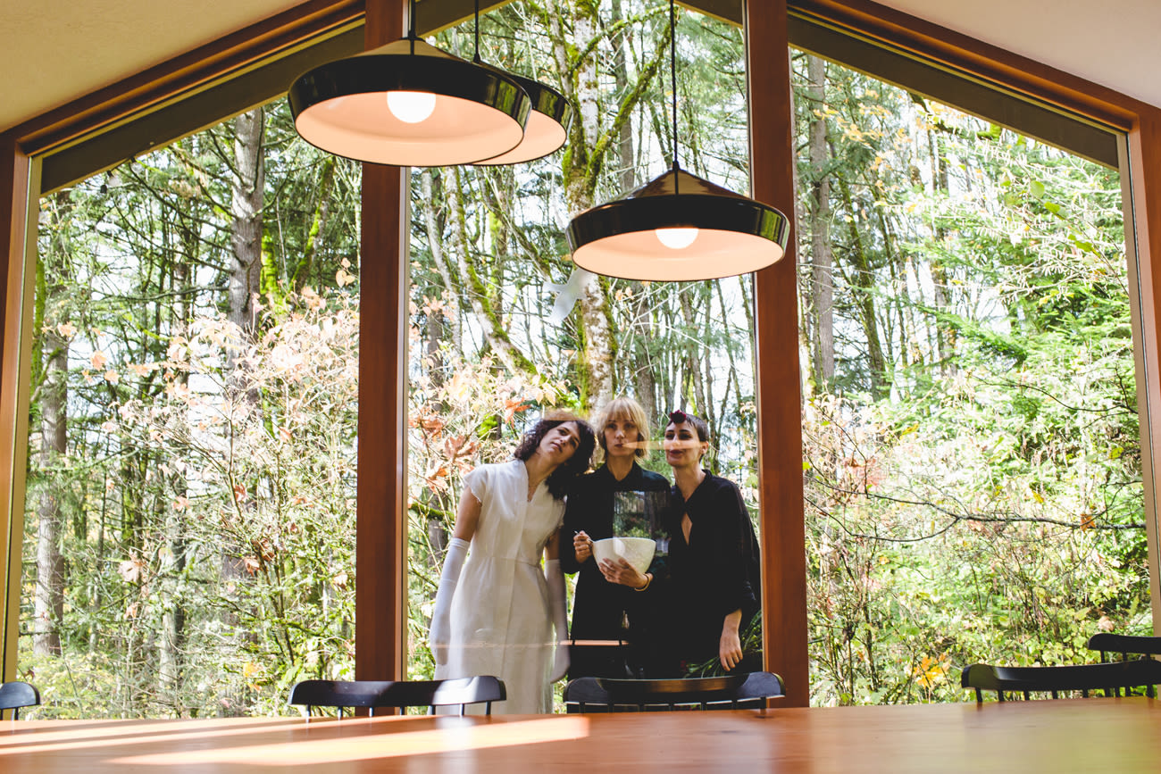 Long before fashion shows assumed their modern incarnation of sleek runways with DJs spinning house music to a massive audience, they were historically quiet, intimate affairs for buyers and private clients. Three local womenswear designers returned to the private model of yesteryear with a gray Sunday morning collaborative show called Residents, in a Southwest Portland home. Kate Towers, Alexa Stark, and Britt Howard stuffed their invite-only attendees ranging from famous rockers to boutique owners into the living room while mimosas flowed.