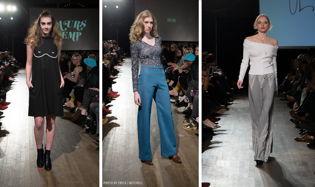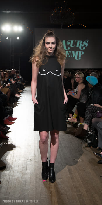 Kemp is well on her way to becoming the sweetheart of Portland's fashion scene. She easily created the most buzz of the night by blasting Salt ‘N Pepa’s “None of Your Business" before showing a chic minimalist collection in cottons and linens with her now infamous boob print blazing across the chest. If that wasn’t enough, midway through multiple members of the 11: Dance Company came onstage shaking booty and turning the crowd into a screaming, cheering mess.
