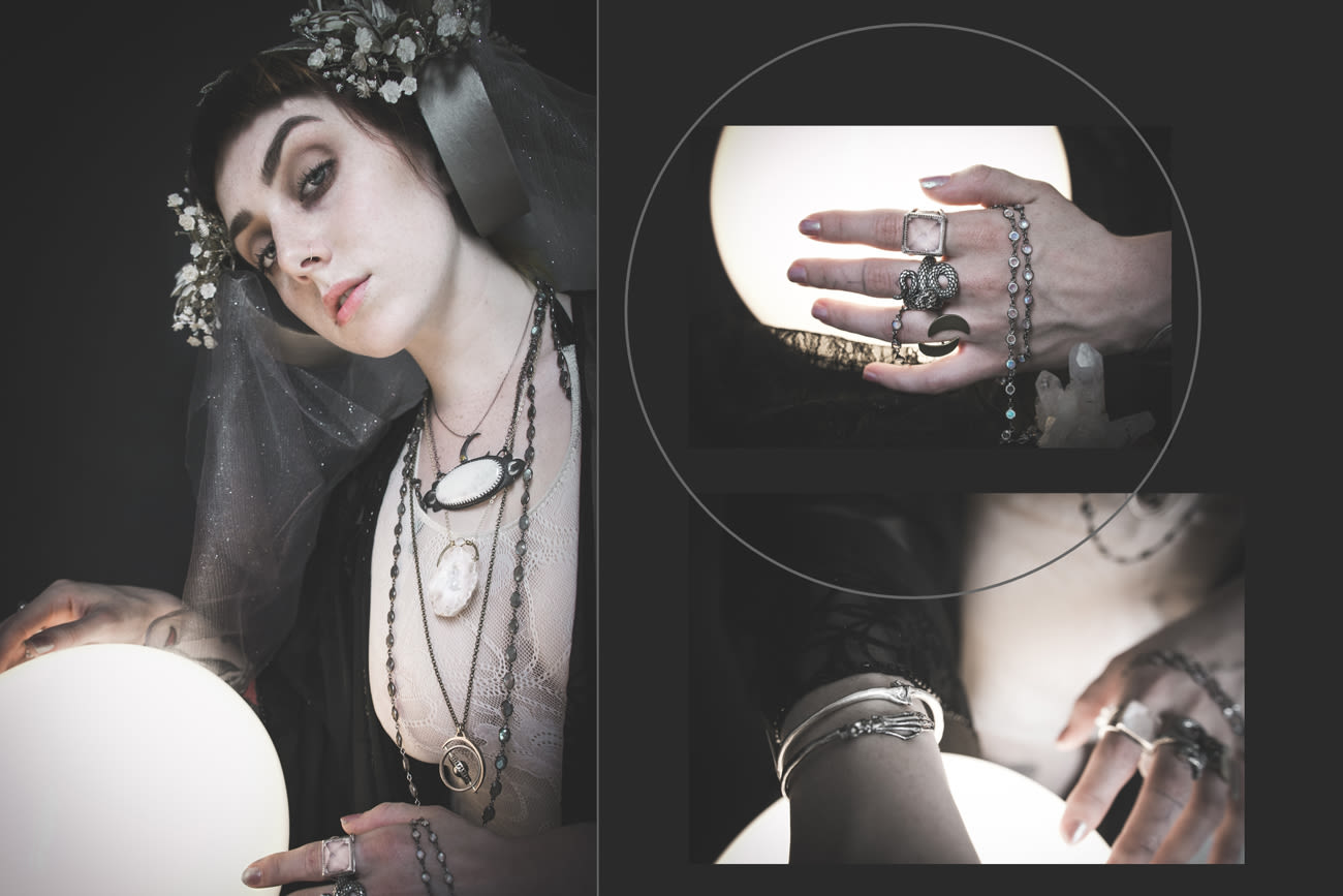 Shot by shop employee/photographer Katie Summer, the cinematic editorial was a family affair, with owners Ridgway and Amy Lee Fox building the sets and styling the jewelry-heavy looks with Altar houseline apparel and nearly 20 accessory designers, including Morgaine Faye, Theeth, Iron Oxide, and Solos. Every pretty piece is available now at the shop.