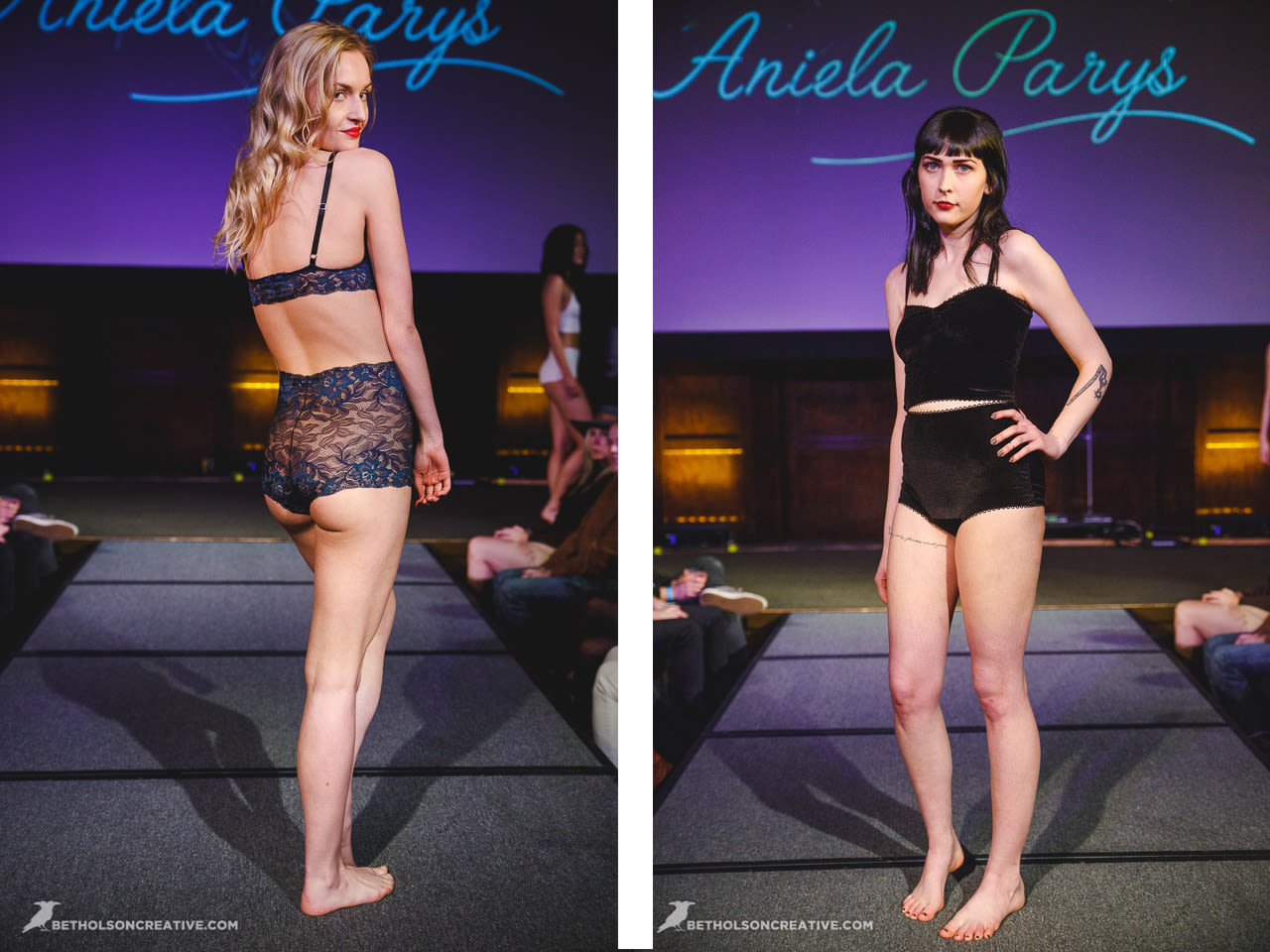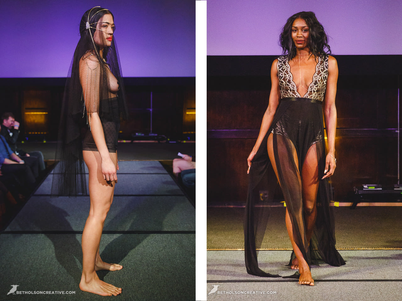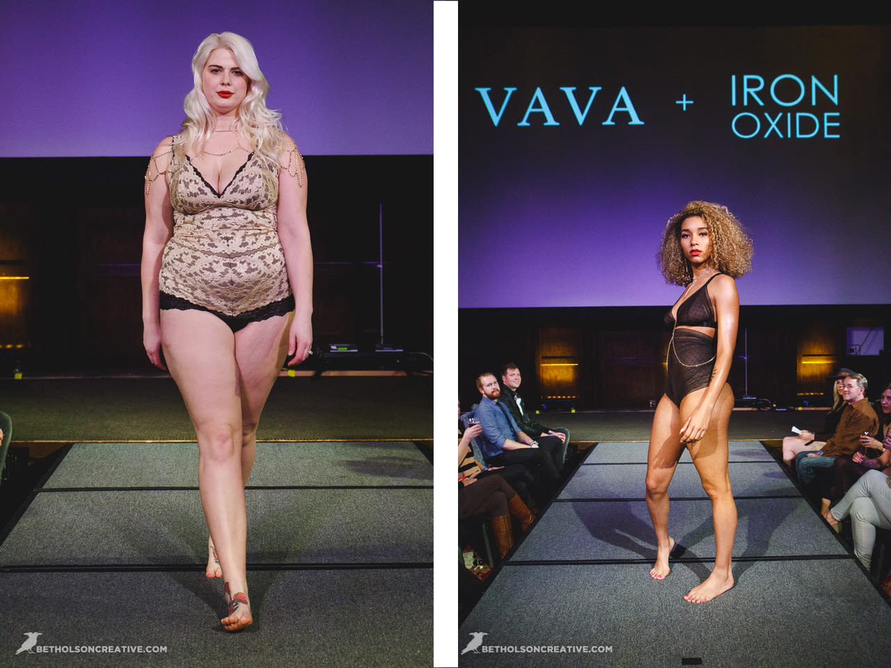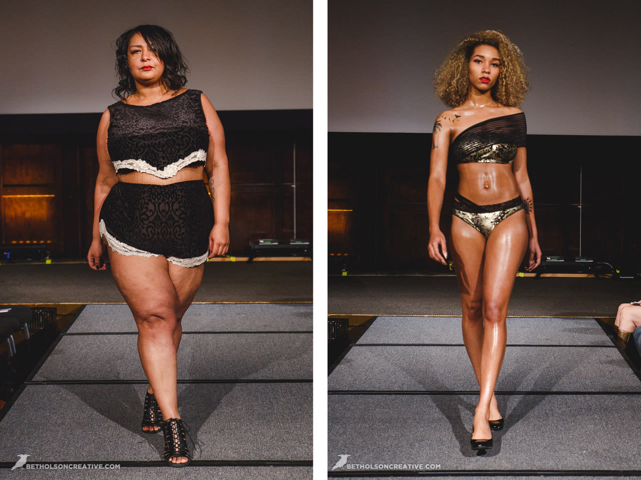 This was the debut of lingerie for beloved plus size line Copper Union. Designer Claire Doody wrapped her babes in cute sheer skirts underneath bras built to support a full bosom. The see-through layers allowed the body to be seen in a playful peekaboo way.