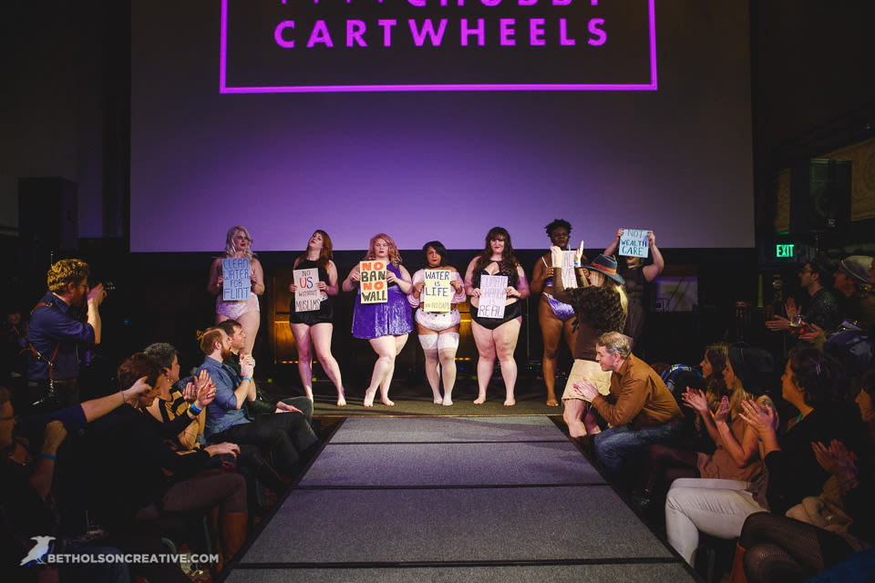 For five years, local runway show Unmentionable brought lingerie to the Doug Fir. This year, it finally outgrew that venue, moving its biggest lineup yet to the two-story Mission Theater. On February 8, a slightly on-edge crowd temporarily forgot their worries as soon as infectiously happy emcee Marissa Sullivan hopped onstage. After an opening performance from the fashionable House of Flora—the three entertained us by vogueing the runway including dropping to the ground for synced fan work, all in heels taller than a small child—we were ready to take in the runway looks. By the time Sullivan returned to the stage and yelled "Boobs are fun!” the audience didn’t ever want to leave.