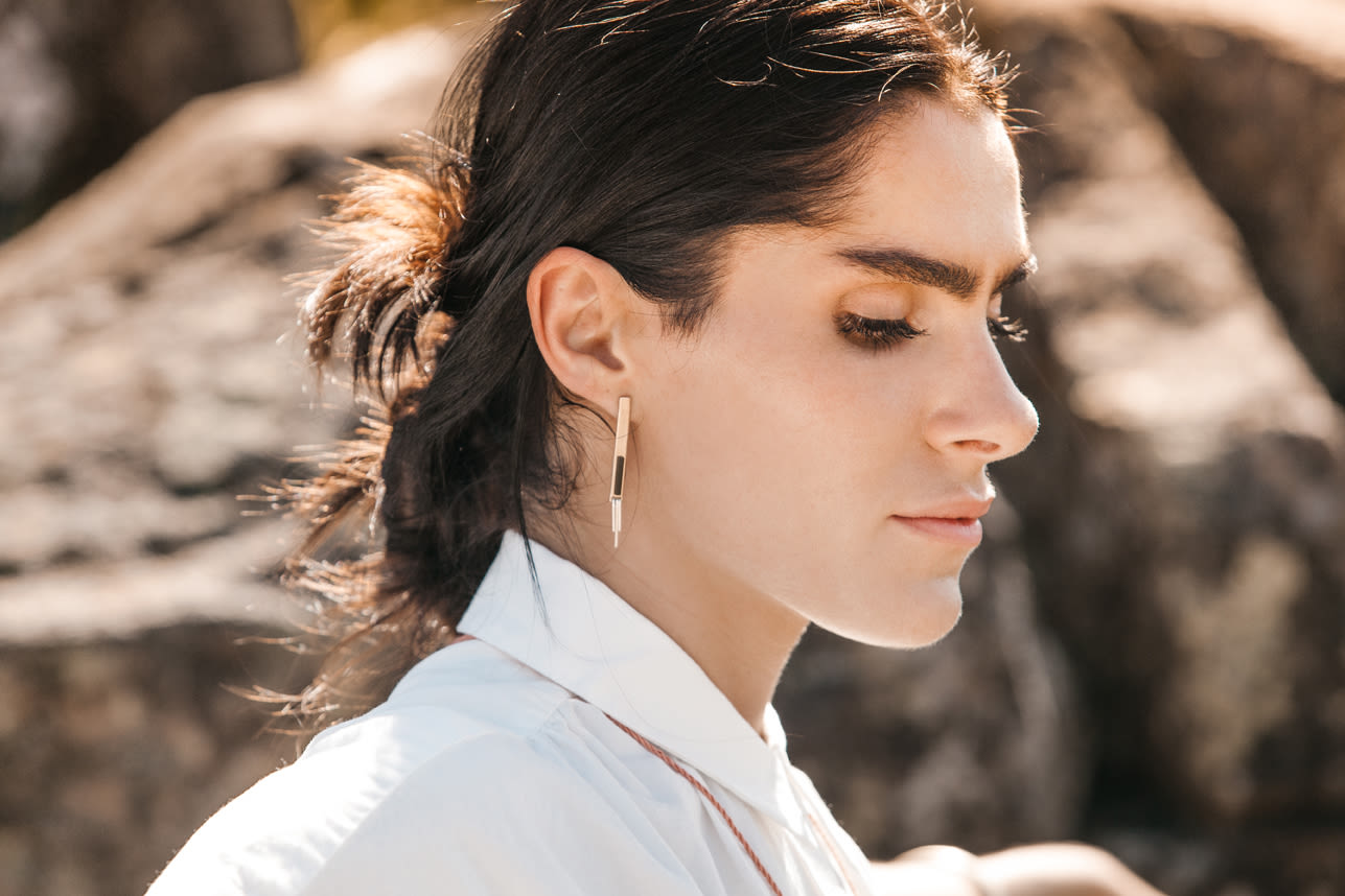 “I’m super proud of the Pacha necklace, because even though it has six stones in it, the design is still simple and interesting," Cross says. Combined with the light-catching fringe, the colors and glow of this collection feel sunny and special.