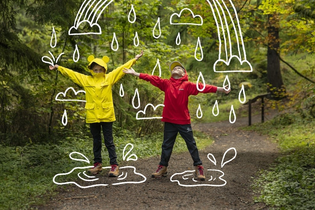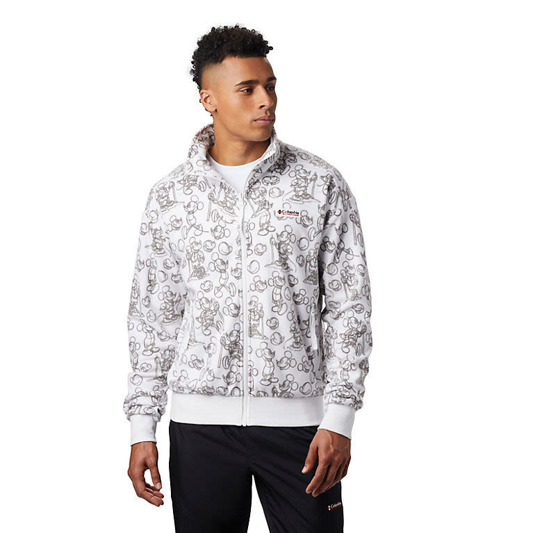 But wait a minute—pop contrast color-blocking, graphic mouse prints, and Mickey ears sewn into sunshine yellow raincoats? It’s not exactly the classic earth-toned hues of olive and navy more commonly associated with Columbia’s aesthetic.