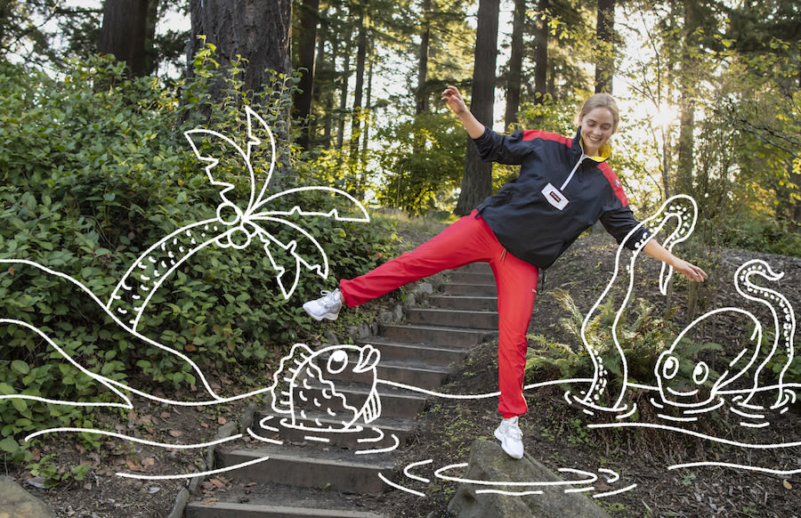 The 18-piece collection features rainwear, graphic tees, hats, and sun-protective shirts and hoodies, optimizing drying and cooling technology, as befits unpredictable Oregon springs.