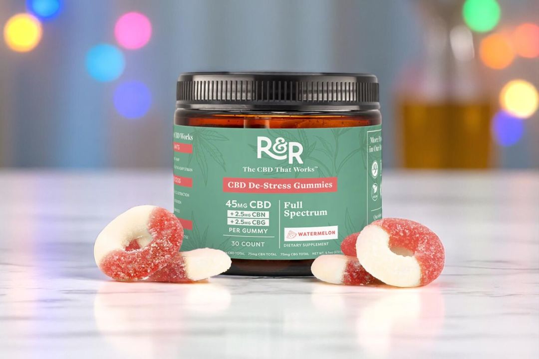 Calm racing thoughts, stress, and overwhelming feelings with the soothing blend of cannabinoids and botanicals in R&R CBD De-Stress Gummies. Each chewy ring contains 45 milligrams of CBD, plus 2.5 milligrams each of CBN and CBG, which are known for promoting relaxation and improving sleep. The soothing ingredients don't end there. These edibles are also boosted with St. John's Wort and chamomile, which may help regulate mood and induce feelings of tranquility.