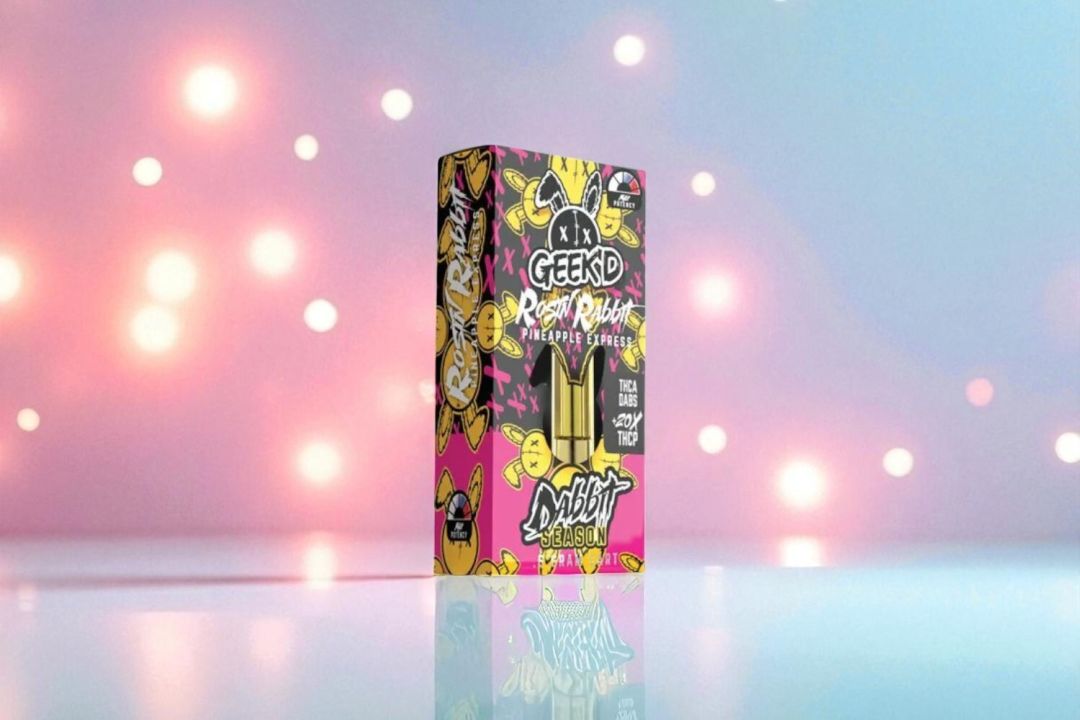 Geek’d’s Rosin Rabbit Pineapple Express THCA cart, available via CBD.co, is a sativa-forward powerhouse designed for users looking for clarity, energy, and a flavor-packed session. Each cartridge contains a carefully crafted blend of THC‑A, Delta‑8, and THC‑P, delivering layered psychoactive effects—from the clarity of sativa to subtle relaxation. The live-resin method captures the bright tropical aromas of pineapple, making every puff taste true to the strain’s profile .