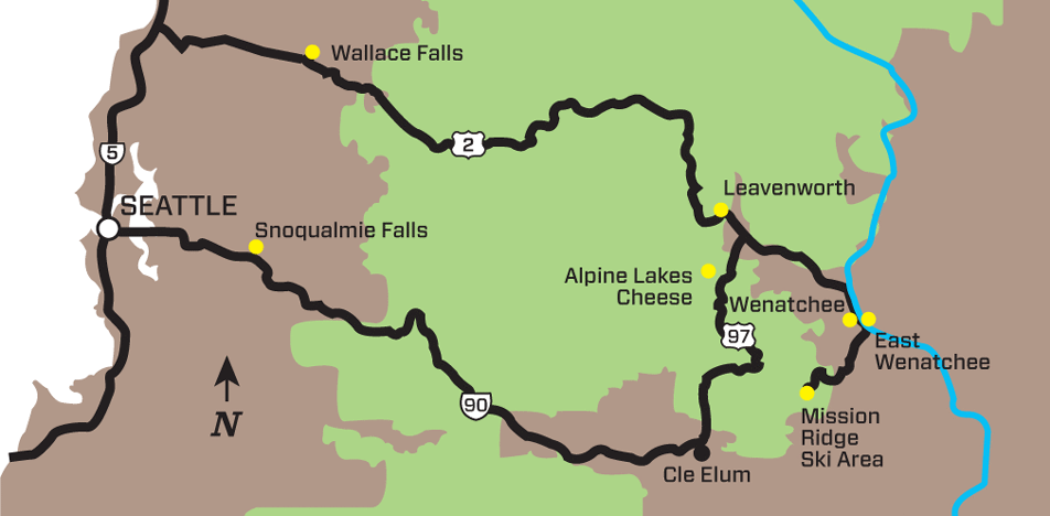 »Four miles off of I-90, the thunderous 270-foot Snoqualmie Falls promises a postcard-worthy place to stretch your legs before the push over stunning Snoqualmie Pass.