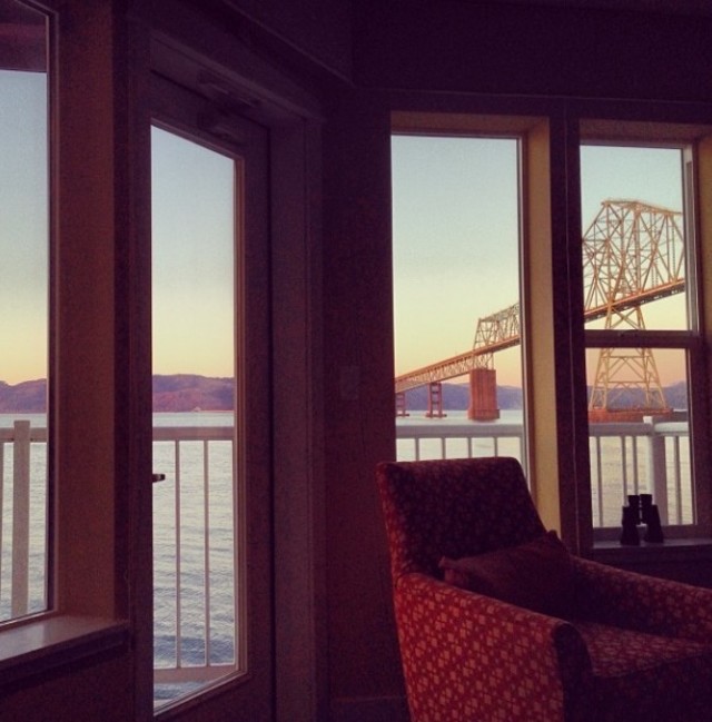 ←Keep Caffeinated: Some of the coast’s best storm-watching seats can be found inside Astoria’s intimate Coffee Girl, a coffee shop perched on Pier 39, home to the West’s oldest Cannery. From behind the original 1875 counter, the Coffee Girl’s baristas serve artfully decorated lattes made with Seattle roaster Caffe D’Arte beans. Add an enormous slab of lemon bread or an oversize coconut-mango scone (made on site, of course) to your latte and pull up a seat at one of the wall-sized picture windows. Wipe down your pane (squeegees are provided), kick back to Etta James’ rich refrains, and revel in the warmth while Neptune stirs up the water just outside. 100 39th St #2, Astoria