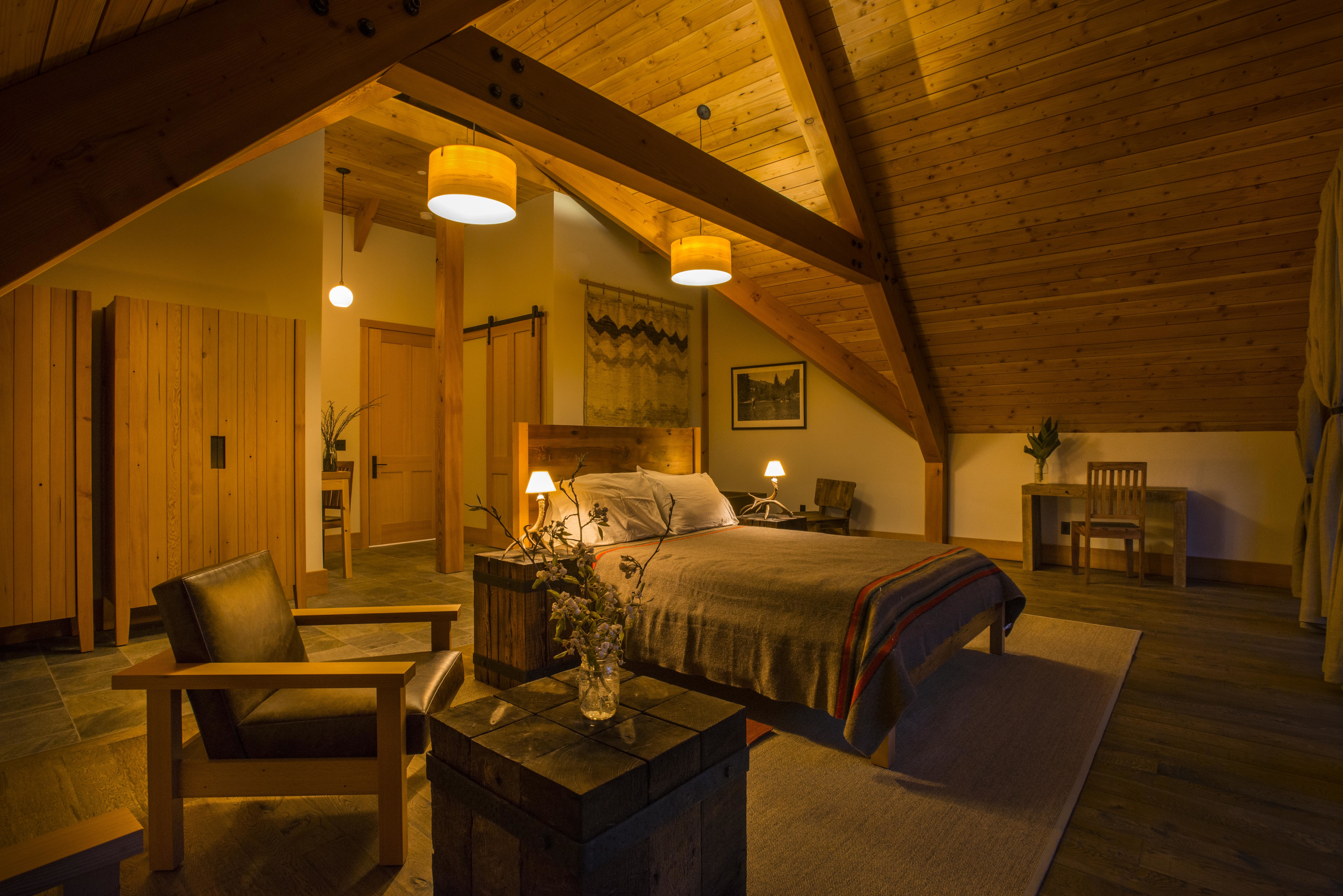 Six years ago, Ellis bought the 126-acre property with dreams of building a sweet life—and sustainable business—here in Oregon's "Alps." It wasn't easy. First, Ellis and his team needed to clear the neglected property of decades-long accumulation of junk—a haul-out that required pricey air transport. ("We were using helicopters like some people use Uber," he says.) There was an outhouse to dismantle, and then, the discovery that the lodge's old kitchen had for years channeled graywater to a nearby wetland. The state mandated ADA access, a kitchen hood, and a sprinkler system installation—the latter hard to do, Ellis says, when your water source is a gravity-fed wilderness spring.