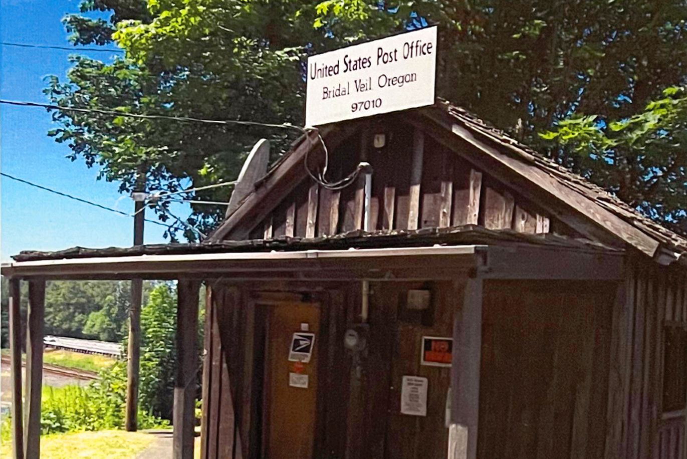 Columbia River mill town near falls of the same name. Timber logged on Larch Mountain and rough-cut in Palmer arrived at Bridal Veil’s finishing mills via a 1.5-mile log flume. A cemetery remains, and a post office with a postmark that’s popular for wedding invitations.