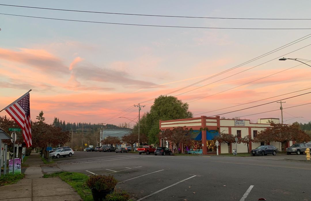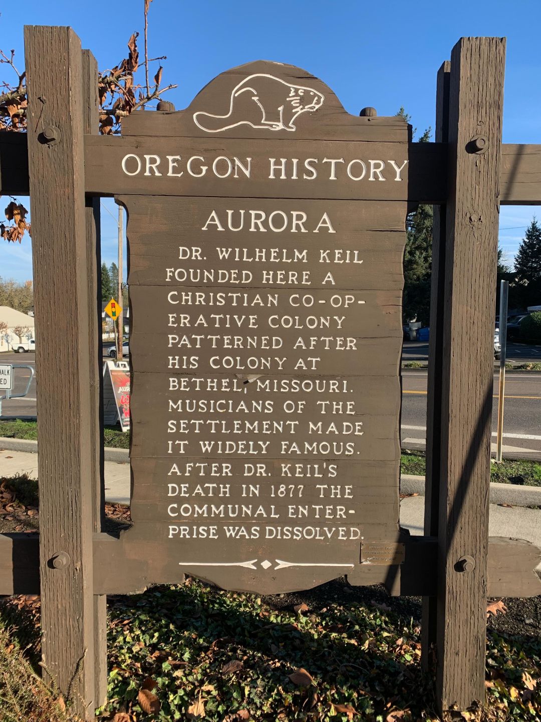 Our driver from Oregon City radioed her colleague to let him know she had a few continuing passengers who had already paid the $1 cash fare, so we can just hop on when the next bus comes. We pass through tiny Barlow (named not for famed road builder Sam but for one of his sons) and cross the Pudding River (named not for Willy Wonka reasons, alas, but for a hearty meal of elk blood pudding a hunting party once enjoyed on its banks) before I hop off in the heart of Aurora.