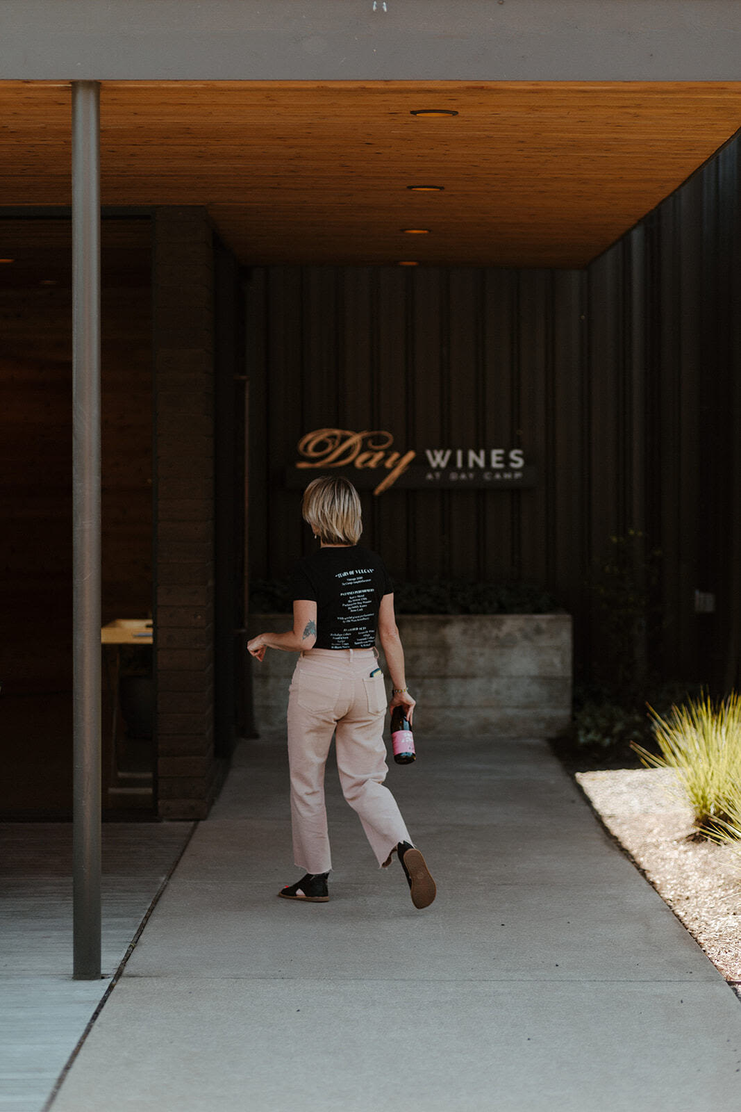 Returning to the main drag, I pass tasting room after tasting room just opening for the day: Purple Hands, La Biblioteca, Open Claim…. The sidewalk peters out and I have to walk on the highway shoulder to make it to the southernmost tasting room, Day Wines. When I reach this turnaround point, it’s almost noon, so I feel OK settling in for a $25, five-wine flight that takes me from a tropical and beachy white (the 2023 Isla Vermentino) to a red blend I’m told is not named after a Police song (the 2022 Wrapped Around Your Finger) to a rich pinot noir sourced from McMinnville’s Momtazi Vineyard. While the details that the Day staffer shares of barrels and clusters and skin thickness are lost on me—a beer person—the wines are distinctive and memorable, and maybe sometime when I wouldn’t have to carry it around all day I’ll come back and buy a bottle.