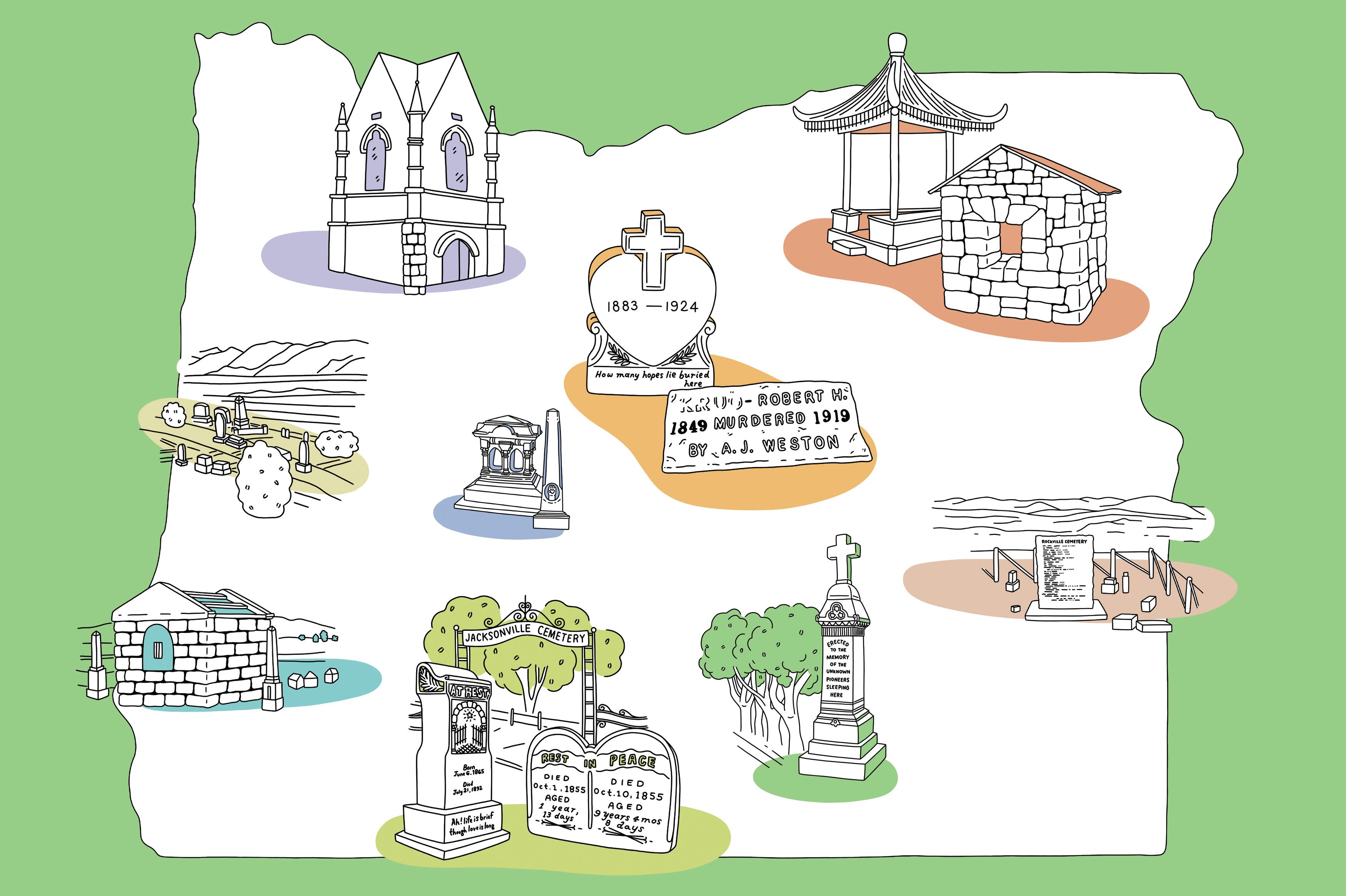 After my tour, I walk through the, um, Herbert Hoover Disc Golf Course (if he was too early for basketball he was definitely too early for disc golf) and along a residential street to reach the Friends Cemetery, which holds another Oregon brush with the presidency: the grave of James Lewelling, the last surviving member of an honor guard that stood watch over Abraham Lincoln’s body. Like Hoover and Minthorn, Lewelling was one of many Midwestern Quakers who ended up in Oregon. He was also a much younger half-brother of Henderson Luelling, who brought 700 fruit trees across the country to the Willamette Valley before he bolted in an attempt to launch a sex cult in Honduras, and Seth Lewelling, who bought out Henderson and took over the orchard that would develop the Bing cherry.