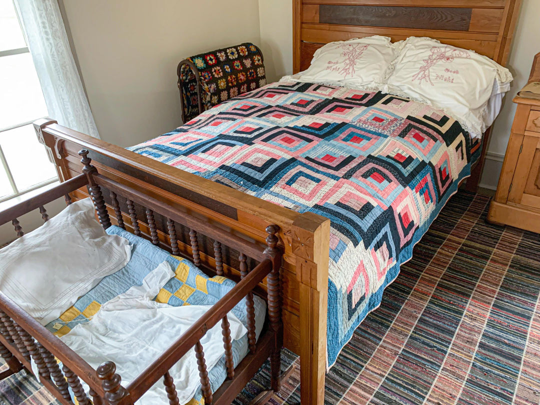 Young Hoover caught trout and crawdads and did chores while his girl cousins made pear butter in the yard, and he once had a job picking potato bugs off crops, earning a penny per bug. Historical artifacts include Hoover’s bed (the original quilt was ruined when a cat snuck in and had a litter of kittens on it in the 1970s), his old fishing gear, period kitchen items like butter molds and a cool flipping waffle iron, a pie safe, and a comfy chair his uncle never let him sit in. When he came to Newberg for the house’s dedication as a museum, held in 1955 on his 81st birthday, he finally got to sit in it.