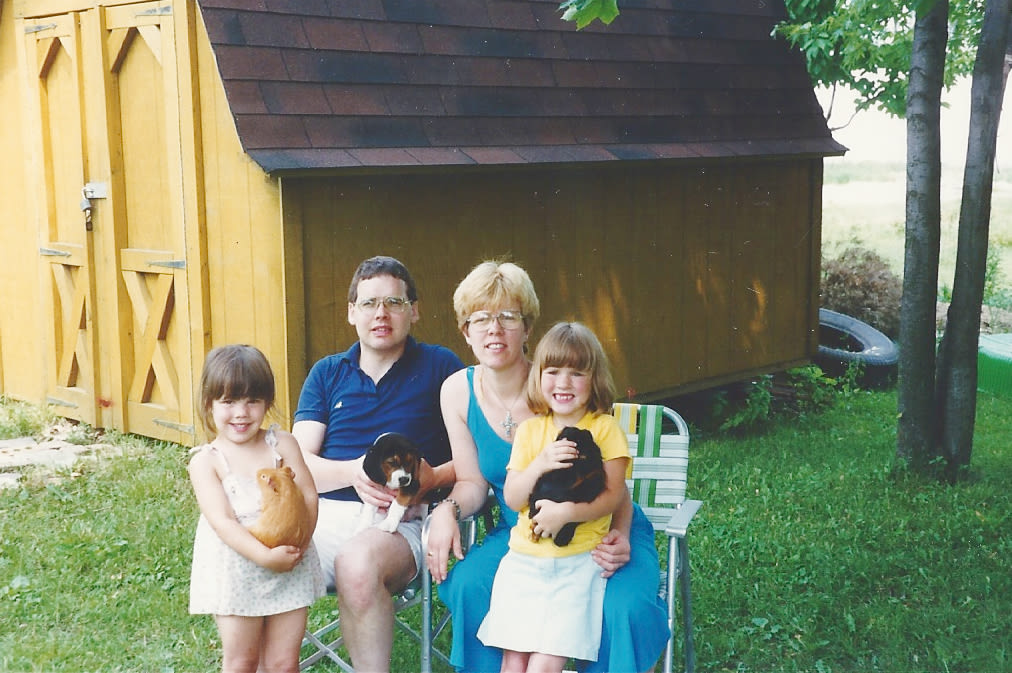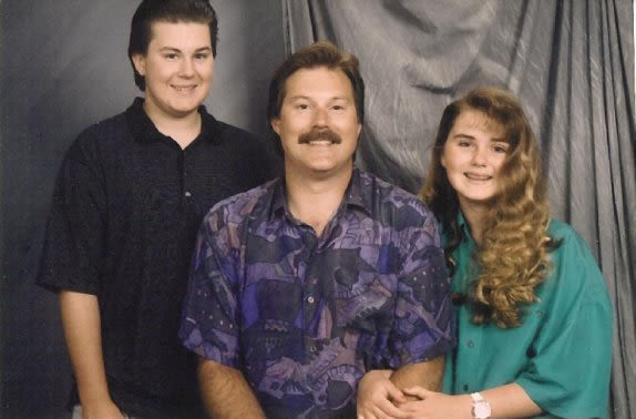 Oh, the 1990s, when we, too, loved the smell of hairspray on the curling iron in the morning. Thanks for the memory, Eden Dawn, pictured here with her dad and brother (and braces) in Salem, where a future style editor was born.